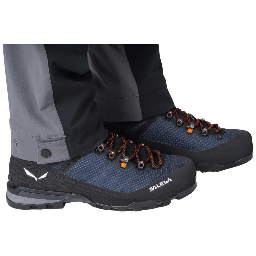 Zwei große Vordertaschen, zwei Oberschenkeltaschen mit Reißverschluss, eine Gesäßtasche mit Reißverschluss und zwei Designer-Gesäßtaschen bieten reichlich Stauraum. Eine praktische Funktion erfüllt auch der untere Beinsaum, der durch eine Weitenregulierung per Reißverschluss eine Anpassung an unterschiedliche Schuhtypen ermöglicht. Das Material ist mit einer ökologischen PFC-freien wasserabweisenden Imprägnierung versehen und die Bluesign-Zertifizierung garantiert Umweltfreundlichkeit.