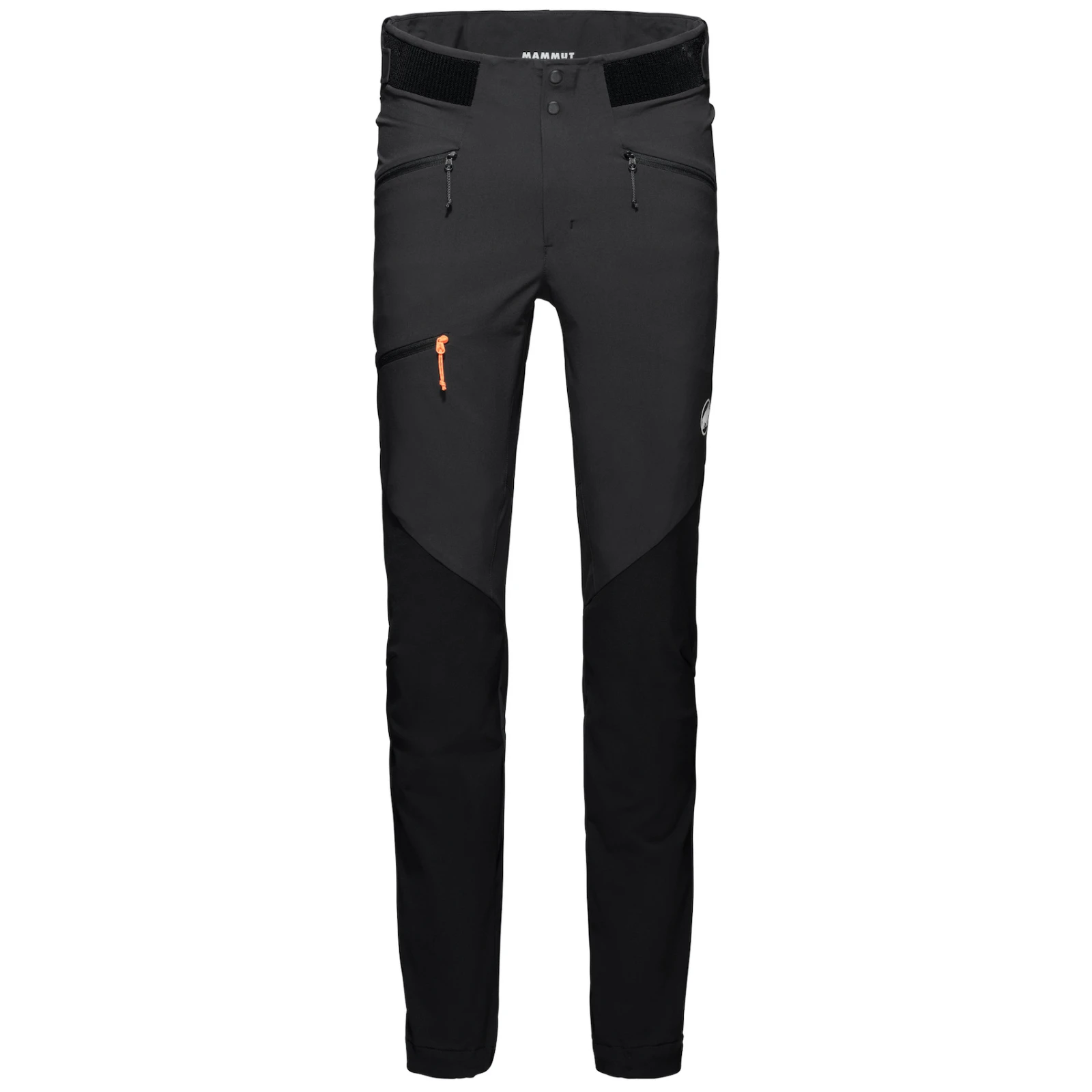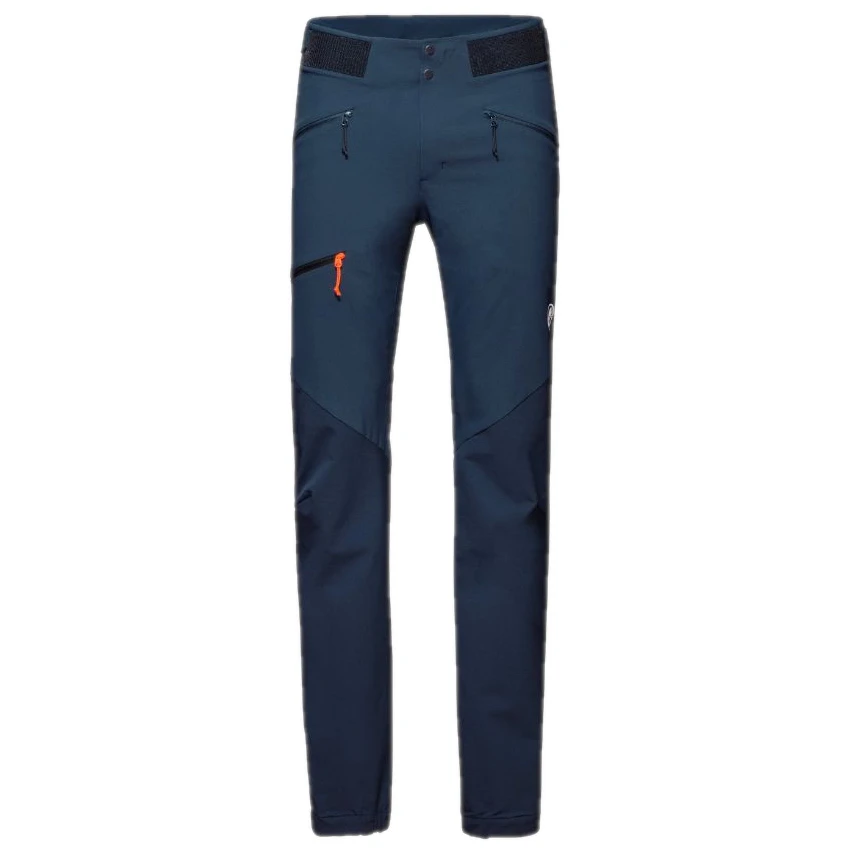 Herren-Softshellhose Courmayeur SO Pants Men der Marke Mammut ist die ideale Wahl für Liebhaber des alpinen Wanderns und Skibergsteigens. Das Außenmaterial besteht aus dem sehr angenehmen Softshell -Gewebe Schoeller® Ecorepel®, das dank seiner Elastizität Ihre Bewegungen nicht einschränkt. Zudem überzeugt dieser Stoff durch eine hohe Atmungsaktivität und große Windbeständigkeit. Im Gesäß-, Knie- und Wadenbereich kommt ein robusteres Double-Weave-Material zum Einsatz, das besonders abriebfestist. Den Kontakt mit dem Fels beim Klettern scheut die Hose nicht. Beim Klettern und Skibergsteigen wirst du sicherlich die gut zugänglichen Taschen zu schätzen wissen, die du auch mit angelegtem Klettergurt bequem erreichen kannst.