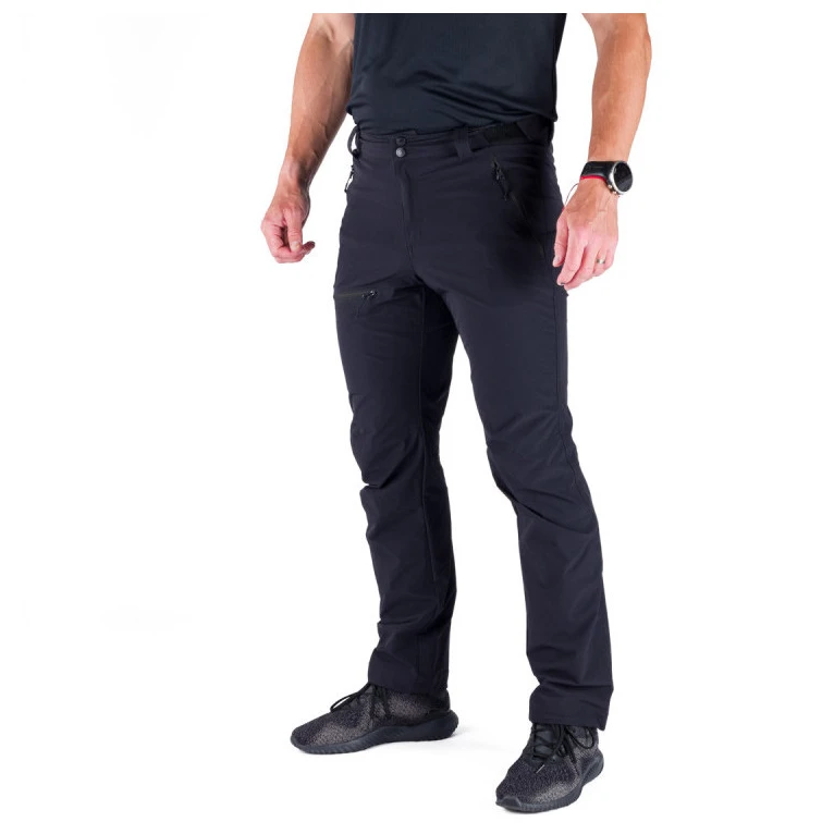 Das Material der Hose ist so konzipiert, dass auch bei erhöhter körperlicher Aktivität ein optimaler Tragekomfort gewährleistet ist. Die strukturierte Oberfläche auf der Innenseite ermöglicht eine bessere Luftzirkulation und Schweißableitung. Darüber hinaus ist die Hose mit einer speziellen wasserabweisenden Behandlung ohne schädliches PFCausgestattet, die vor leichtem Regen und Feuchtigkeit schützt, ohne die Atmungsaktivität des Materials einzuschränken. Für maximalen Tragekomfort verfügt die Hose über einen elastischen Hosenbund, der sich der Figur natürlich anpasst. Zusätzlich wird es durch ein Set an Schlaufen ergänzt, dank denen die Hose mit einem Gürtel getragen werden kann. Die Fronttaschen und die Gesäßtasche sind mit Reißverschlüssen ausgestattet, um eine sichere Aufbewahrung von Wertgegenständen zu gewährleisten. Zusätzlich befindet sich am Oberschenkel eine kleinere Tasche, die sich ideal für Münzen, ein Taschenmesser oder andere Kleinigkeiten eignet, die man immer griffbereit haben muss.