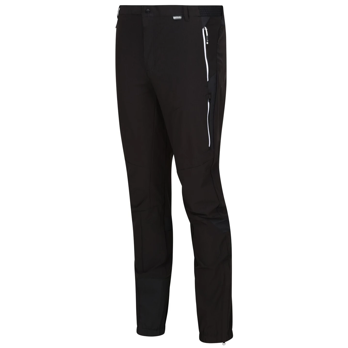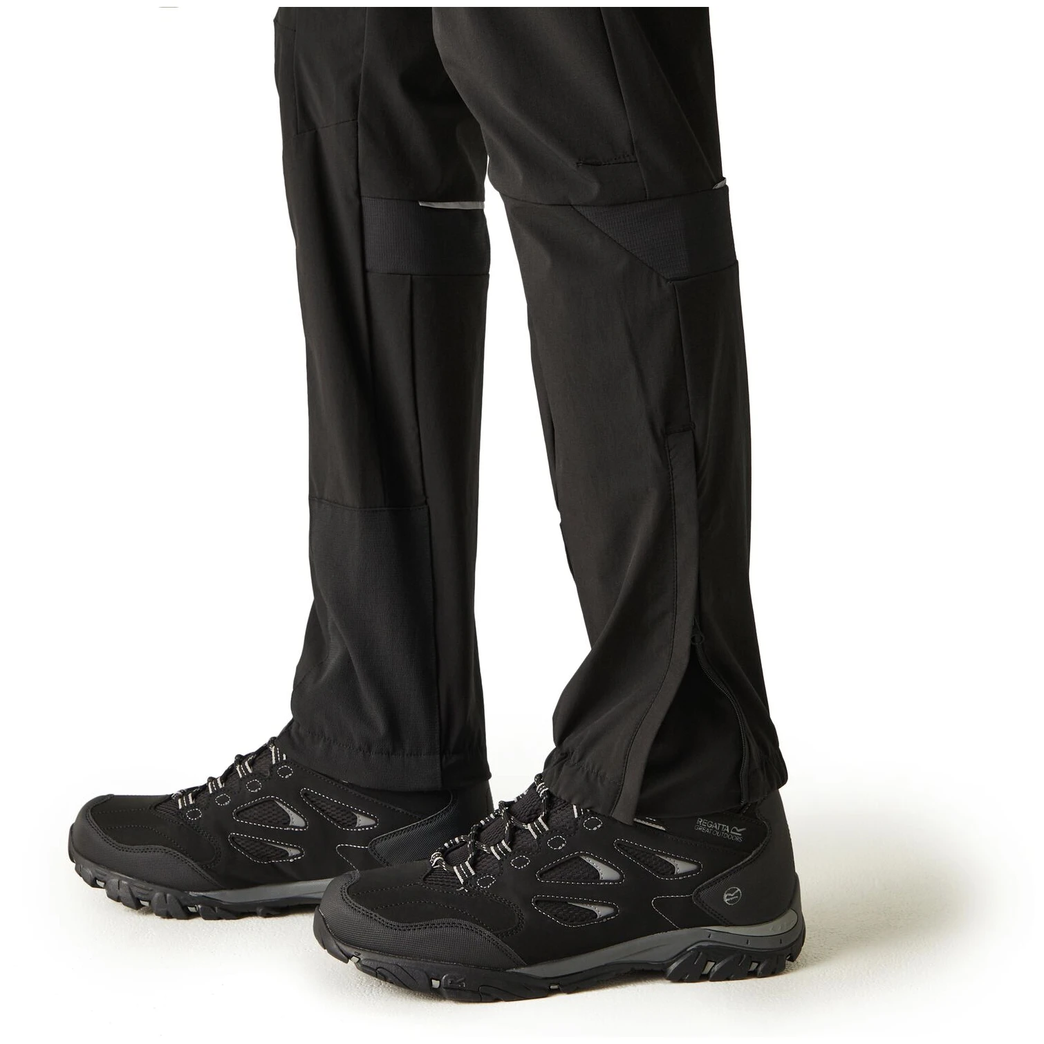 Dieflexible, strapazierfähige und bequeme Herren Regenhose Mountain Trousers III der Marke Regatta bereitet Sie auf Abenteuer vor. Dank des Isoflex-Gewebes bietet die Herren-Wanderhose die nötige Flexibilität und Strapazierfähigkeit. Mesh-Stretcheinsätze sorgen dafür, dass sich die Wanderhose Ihren Bewegungen anpasst. Ein teilweise elastischer Hosenbund mit Griptape sorgt für Komfort und Sicherheit. Die wasserabweisende Beschichtung hält leichte Sommerschauer ab. Das vorgeformte Kniedesign ermöglicht eine bessere Bewegungsfreiheit.