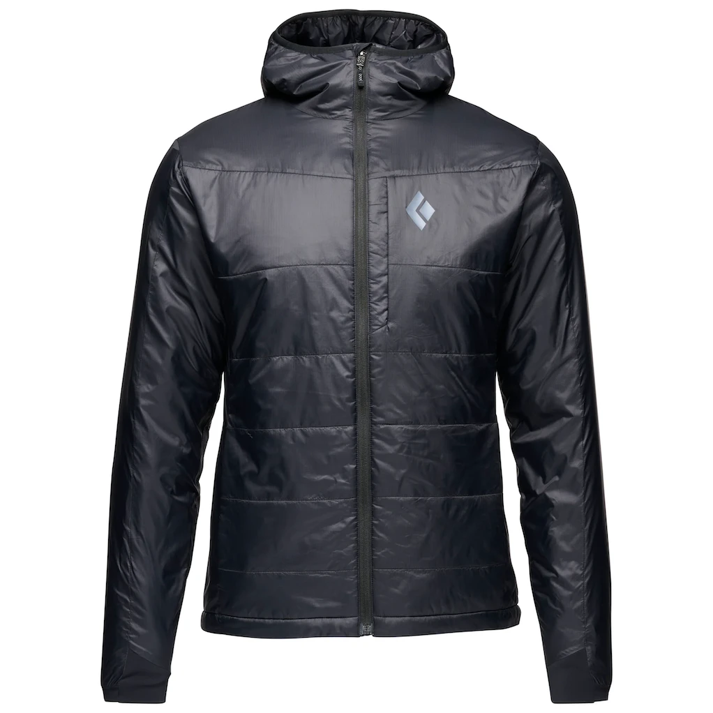 Die Herrenjacke M Solution Hoody von Black Diamond ist ideal für unberechenbares Frühlings- und Herbstwetter oder zum abendlichen Aufwärmen nach einem anstrengenden Tag. Sie ist gefüttert, wasserabweisend und winddicht.