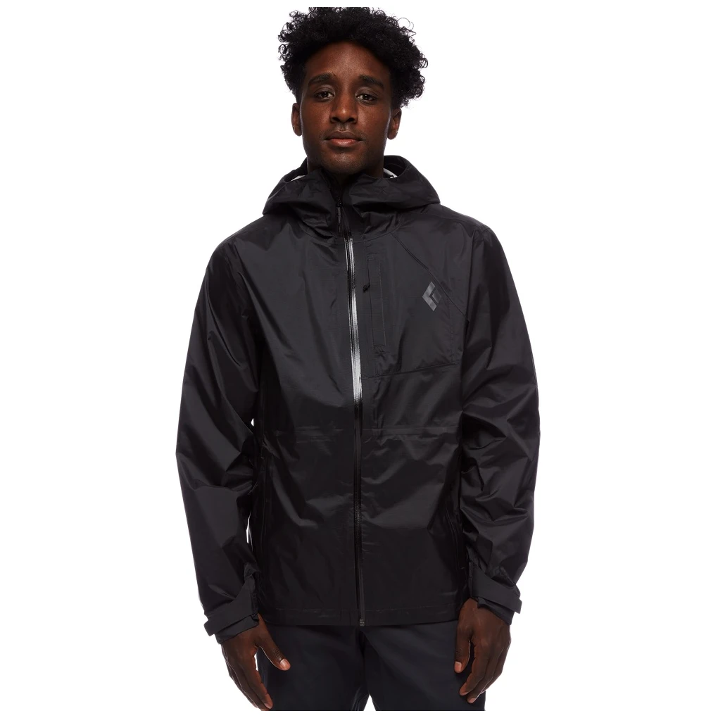 Die wasserdichte Treeline Rain Shell-Jacke für Herren von Black Diamond wurde entwickelt, um Sie vor Regenschauern in den Bergen zu schützen. Mit einem 2,5-lagigen 10K/10K-Gewebe, das vollständig verklebt ist, ist das Treeline atmungsaktiv und passt sich Ihren Bewegungen an, bleibt dabei aber 100 % winddicht und wasserdicht. Ein YKK® Aquaguard-Reißverschluss in der Mitte der Vorderseite hält Feuchtigkeit ab, während eine DWR-Beschichtung für Belüftung sorgt. Die hintere Belüftung mit Netztaschen hält Sie dank passiver Luftzirkulation außerdem trocken und kühl. Die Jacke verfügt außerdem über zwei Reißverschlusstaschen für die Hände, in denen Sie unterwegs wichtige Dinge verstauen können. Die leicht verstellbare und mit einem Kletterhelm kompatible Kapuze schützt Sie auch bei heftigsten Regengüssen, während der verstellbare Saum und die verstellbaren Bündchen sich dem Körper anpassen.