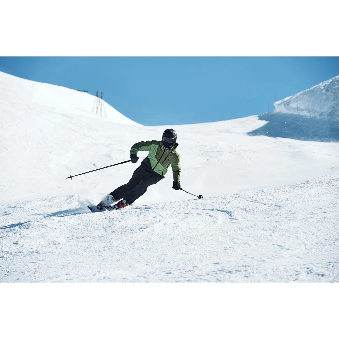 Das Ared 30/30-Material ist flexibel, wasserdicht und atmungsaktiv. Die äußere wasserabweisende Schicht wird durch verschweißte Nähteergänzt. Die extra warme Füllung besteht aus recycelten Materialien. Das Fleecefutter ist im Halsbereich platziert und sorgt für maximale Wärme und Schutz. Der Rest des Körpers besteht aus einem Polyesterfutter in Kombination mit Stretcheinsätzen, um maximalen Komfort zu gewährleisten. In den Achselhöhlen befinden sich Belüftungslöcher mit Reißverschluss und Netzgewebe. Der durchgehende Reißverschluss ist wasserdicht, verfügt über einen Kinnschutz und ist mit einer Abdeckklappe unterlegt. Die perfekt sitzende Kapuze schützt ebenso gut vor schlechtem Wetter wie der Schneefang. Die inneren Bündchen sind elastisch, die äußeren Bündchen sind per Klettverschluss verstellbar. Es gibt praktische Taschen zur Aufbewahrung wichtiger Dinge. Zwei Hauptfächer mit wasserdichten Reißverschlüssen, eine Brusttasche, eine Skipasstasche, eine innere Netztasche für die Skibrille mit Tuch zum Abwischen und eine innere Reißverschlusstasche. Das Material enthält kein PFC, PFOA und PFOS.