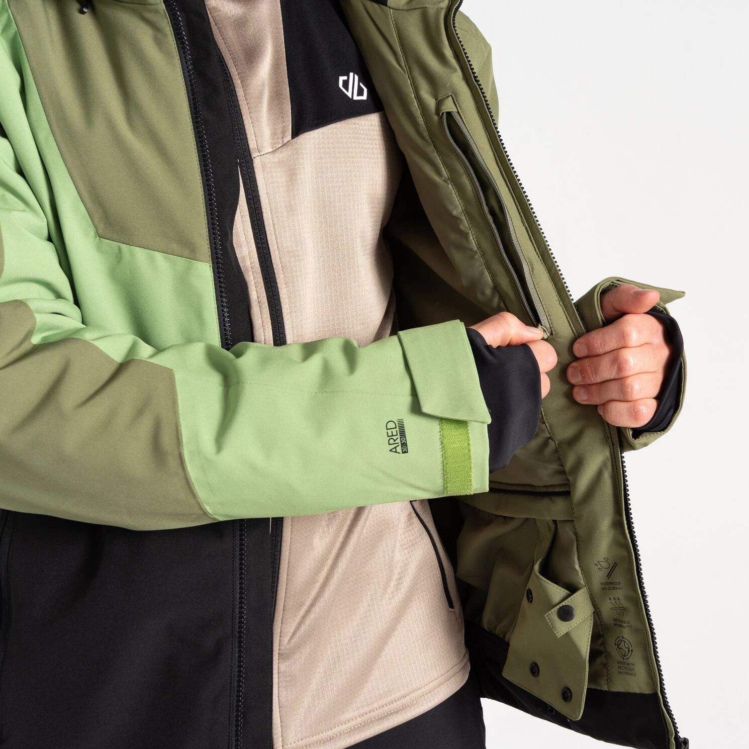 Die Baseplate II Jkt Herrenjacke von Dare 2b besteht aus modernem Gewebe, das über wasserdichte, elastische und hoch atmungsaktive Eigenschaften verfügt, sodass Sie für jede Abfahrt gerüstet sind.