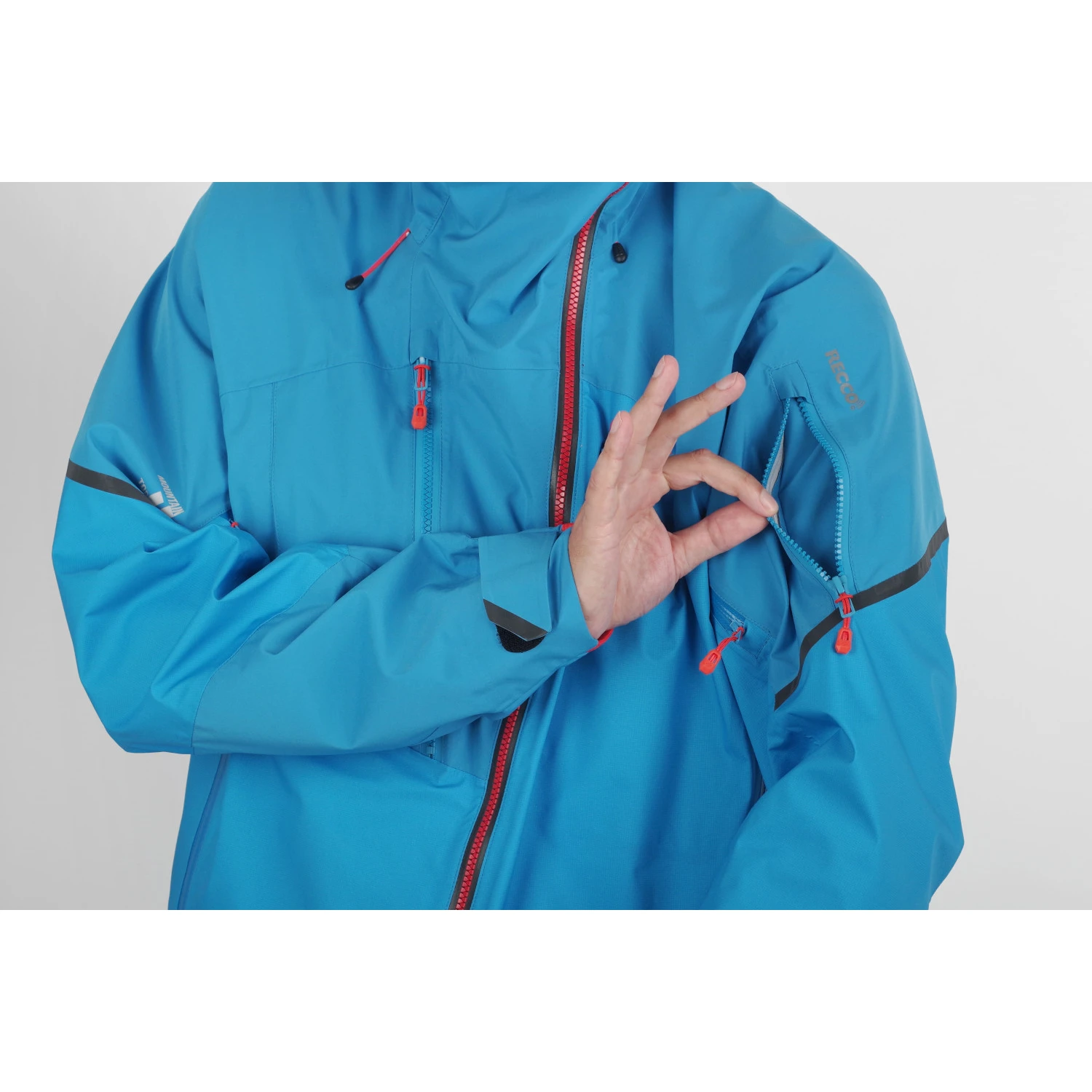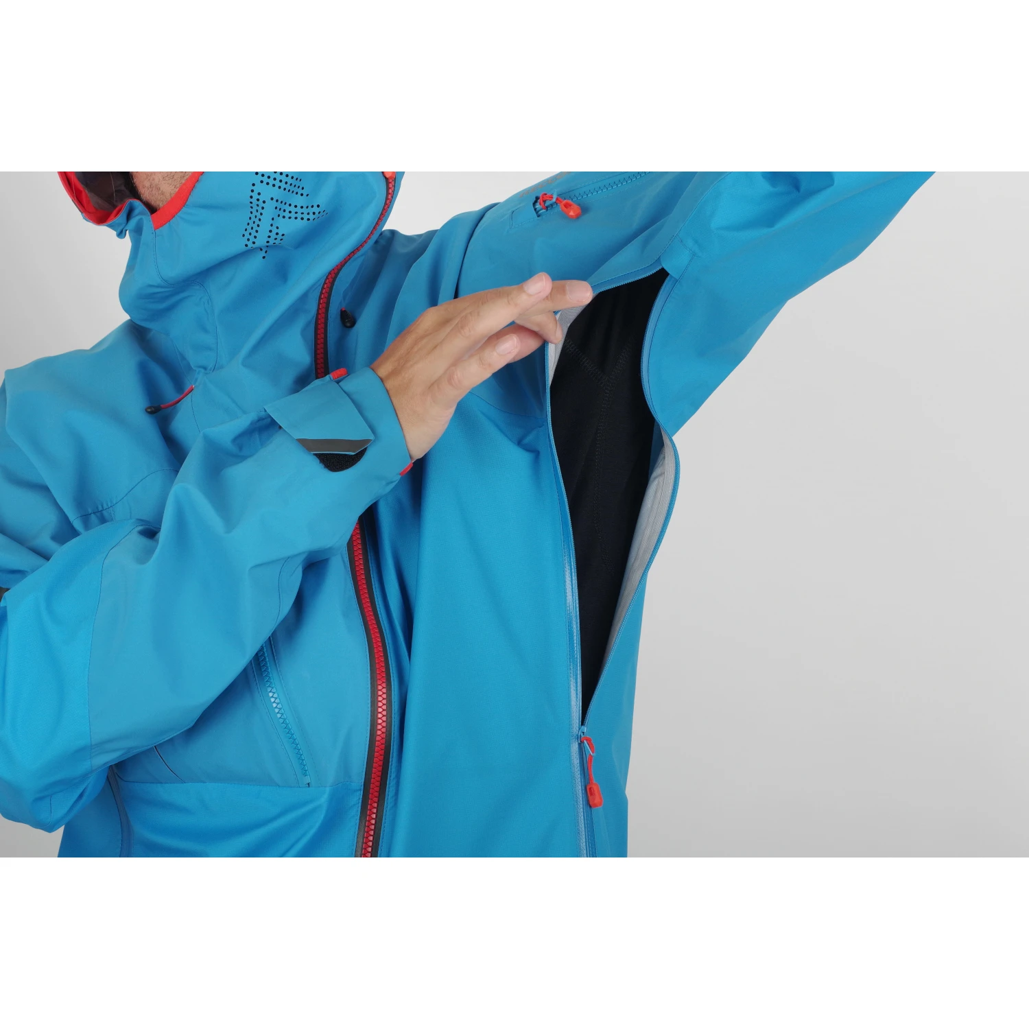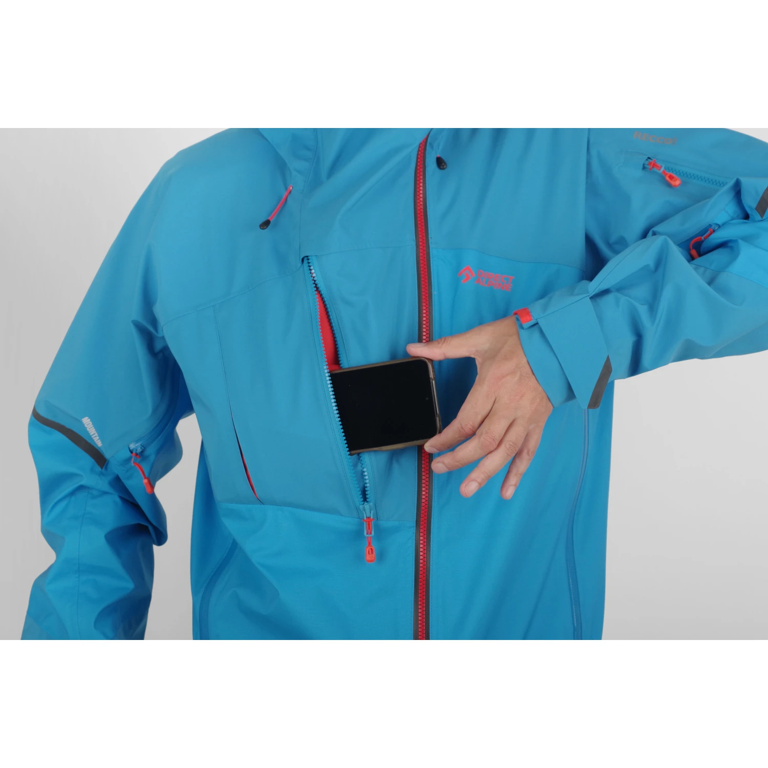 Vorne befindet sich eine große Blasebalgtasche, am Ärmel eine Innentasche, die zur Aufnahme des Recco-Rettungs- Systemsvorgesehen ist. Die Jacke ist selbstverständlich anatomisch geformt, das Rückenteil ist verlängert und in der Taille elastisch gestrafft für besseren Halt am Rücken, die Ärmel mit verstärkten Kanten sind ebenfalls anatomisch geformt. Die Nähte der Jacke sind zu 100% verschweißt, gleichzeitig ist das Material aber absolut atmungsaktiv.