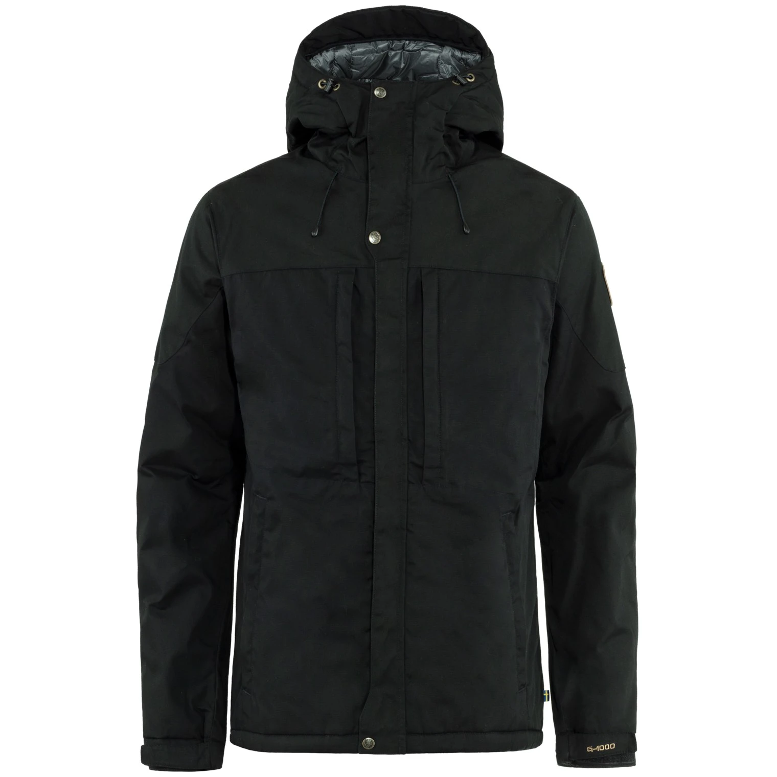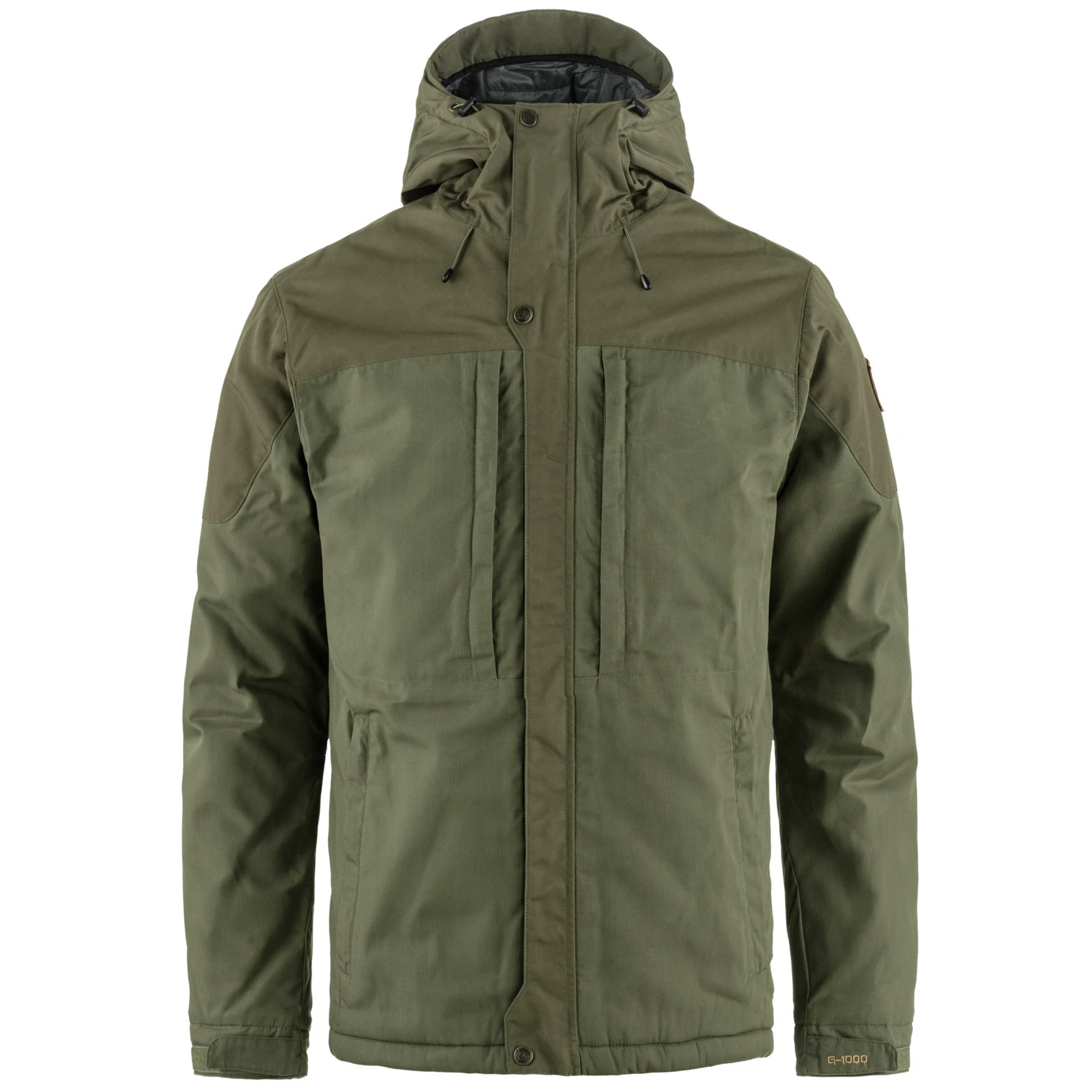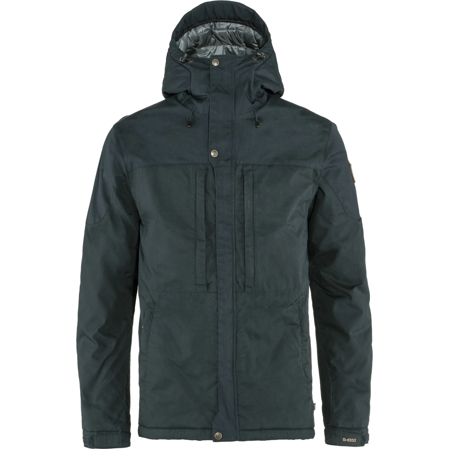 Winterjacke aus G-1000® mit leichter Wattierung und hüftlanger Länge, mit fester, verstellbarer Kapuze. Dies ist großartige Outdoor-Kleidung für die kälteren Monate des Jahres, die dem Wind standhält, bei kurzen Schauern trocken bleibt und gleichzeitig den Schweiß ableitet, der sich bei körperlicher Aktivität ansammelt. Die synthetische Füllung G-Loft Supreme hält Sie auch in feuchten Umgebungen warm. In der Jacke können Sie sich, mit oder ohne Rucksack, sehr gut bewegen. Die Ärmel sind anatomisch geformt und die Manschetten sind mit Druckknöpfen verstellbar. Der Zwei-Wege-Reißverschluss wird durch eine Schutzklappe mit Druckknöpfen an Kinn, Brust und Saum abgedeckt. Die Jacke bietet praktischen Stauraum in mehreren Taschen: zwei vertikalen auf der Brust und zwei an den Seiten – alle mit Reißverschlüssen, die mit extragroßen Schiebern ausgestattet sind, die sich auch mit Handschuhen leicht öffnen und schließen lassen. Darüber hinaus verfügt die Jacke innen über zwei geräumige Netztaschen, die sich hervorragend zur Aufbewahrung von Handschuhen eignen. Zur Regulierung der Saumweite dient ein Kordelzug.