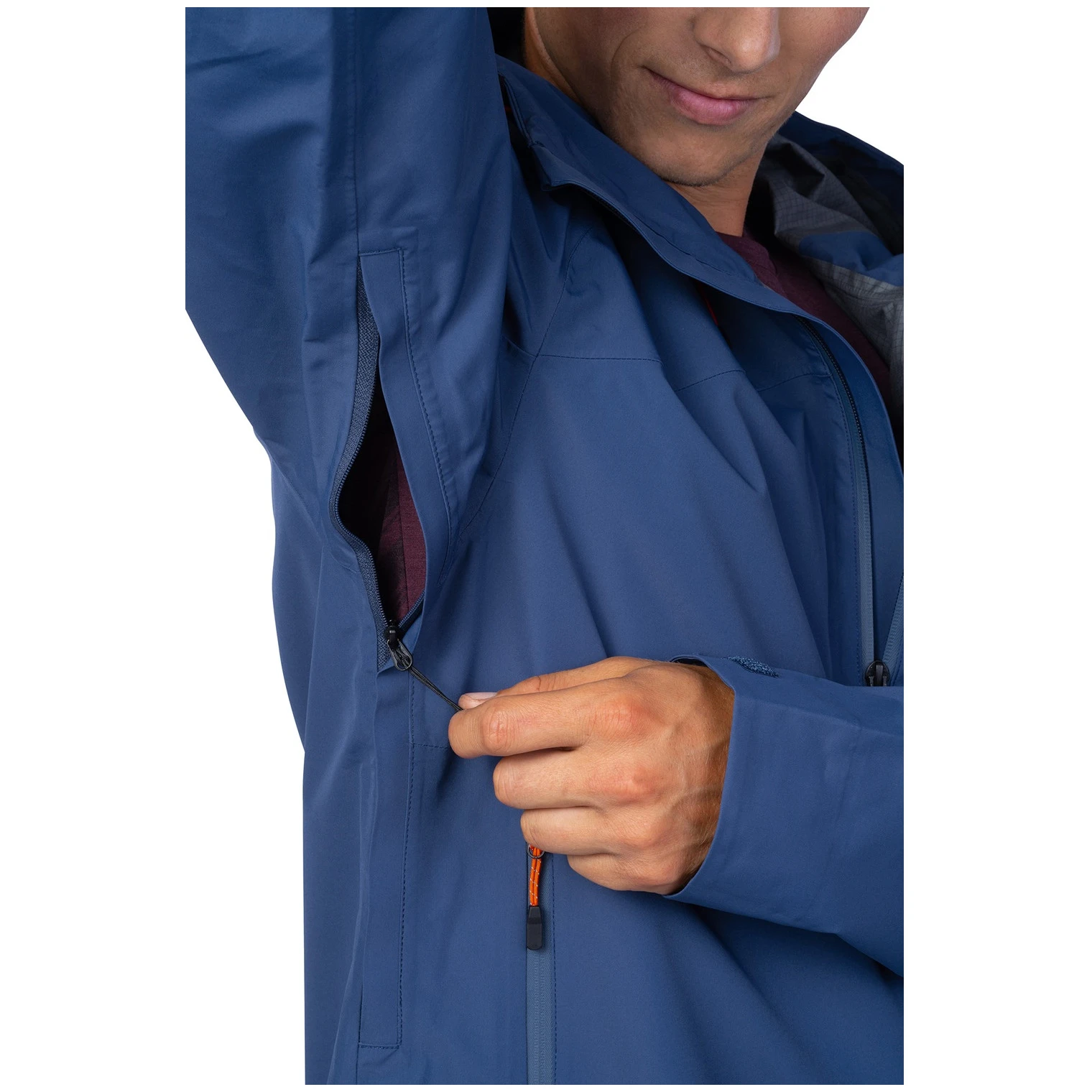 Belüftungsreißverschlüsse unter den Armen sorgen für eine effektive Belüftung, während vollverschweißte Nähte und wasserdichte Reißverschlüsse umfassenden Schutz vor Nässe gewährleisten. Die Jacke verfügt über eine verstellbare Kapuze, die sich durch Gummibänder ganz einfach in zwei Richtungen verstellen lässt, und einen Saum mit Weitenregulierung für eine optimale Passform. Anatomisch geformte Ärmel mit Klettverschluss ermöglichen bequeme Bewegungen ohne Einschränkungen.