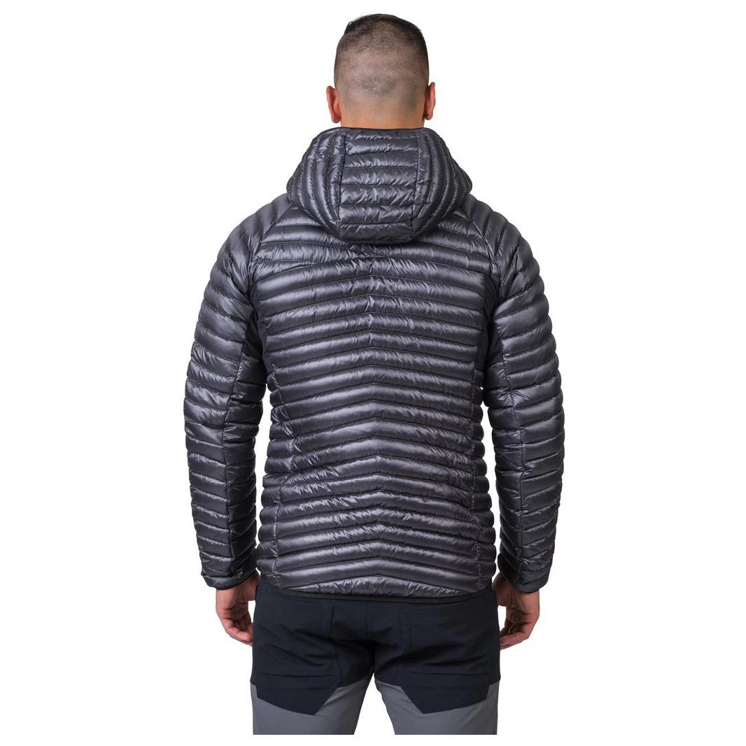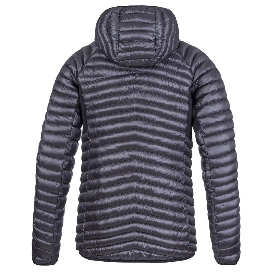 Herren Leichte Daunenjacke Mio Hoody vom Hersteller Hannah mit einer Oberflächenbehandlung des Materials um die Wasseraufnahme zu verhindern. Elastische Einsätze im Achselbereich ermöglichen entspannte Bewegungen und Tragekomfort beim Tragen. Die Kammerfülltechnologie beinhaltet hochwertige Entendaunen im Verhältnis 80/20 mit einer Füllkraft von 750 cuin.