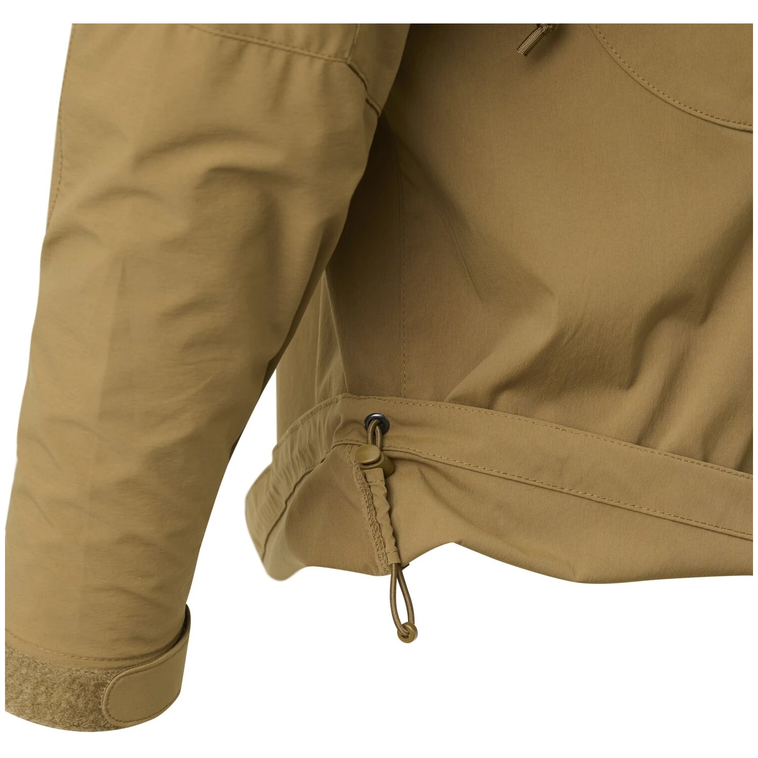 Die Jacke ist lockerer geschnitten, sodass sie als Außenjacke verwendet werden kann und an kälteren Tagen ein wärmeres Sweatshirt darunter getragen werden kann. Es schützt Sie gut vor Kälte und Feuchtigkeit. Die Kapuze ist verstellbar und verfügt über einen geformten Schirm für besseren Schutz vor Witterungseinflüssen. Der Rücken ist gestreckt, um den unteren Rücken zu schützen. Auch die Manschetten sind verstellbar . Der untere Teil der Jacke kann mit einer elastischen Kordel verstellt werden.