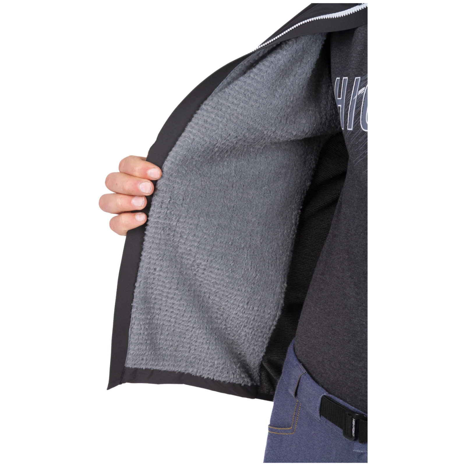 Der untere Teil der Jacke und die Ärmel sind mit einem elastischen Besatz versehen