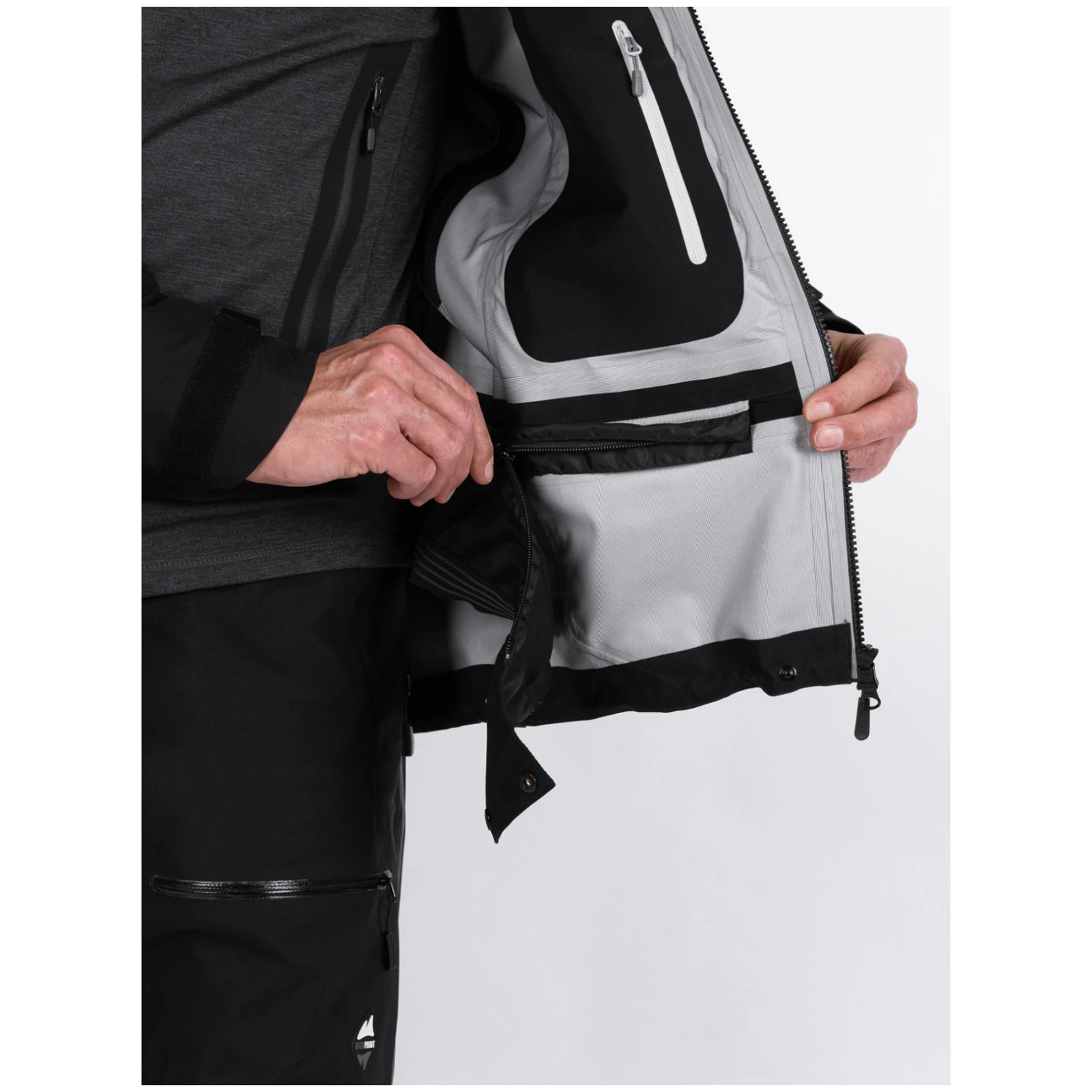 Die Jacke ist mit praktischen Taschen ausgestattet, die einen schnellen Zugriff auf das Nötigste ermöglichen. 3D-Kapuze mit Kordelzug und anatomisch geformte Ärmel sorgen für eine perfekte Passform, auch mit Helm oder Handschuhen. Ein abnehmbarer Schneefang und hochwertige, wasserdichte YKK-Reißverschlüsse schützen vor Witterungseinflüssen und sorgen für Zuverlässigkeit und Komfort in jeder Situation.