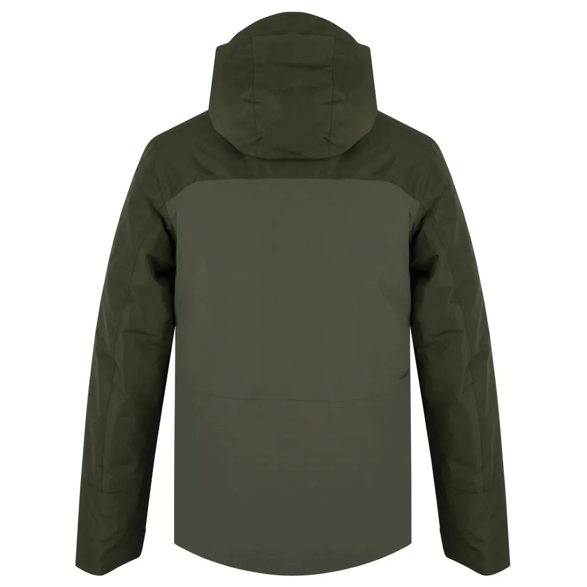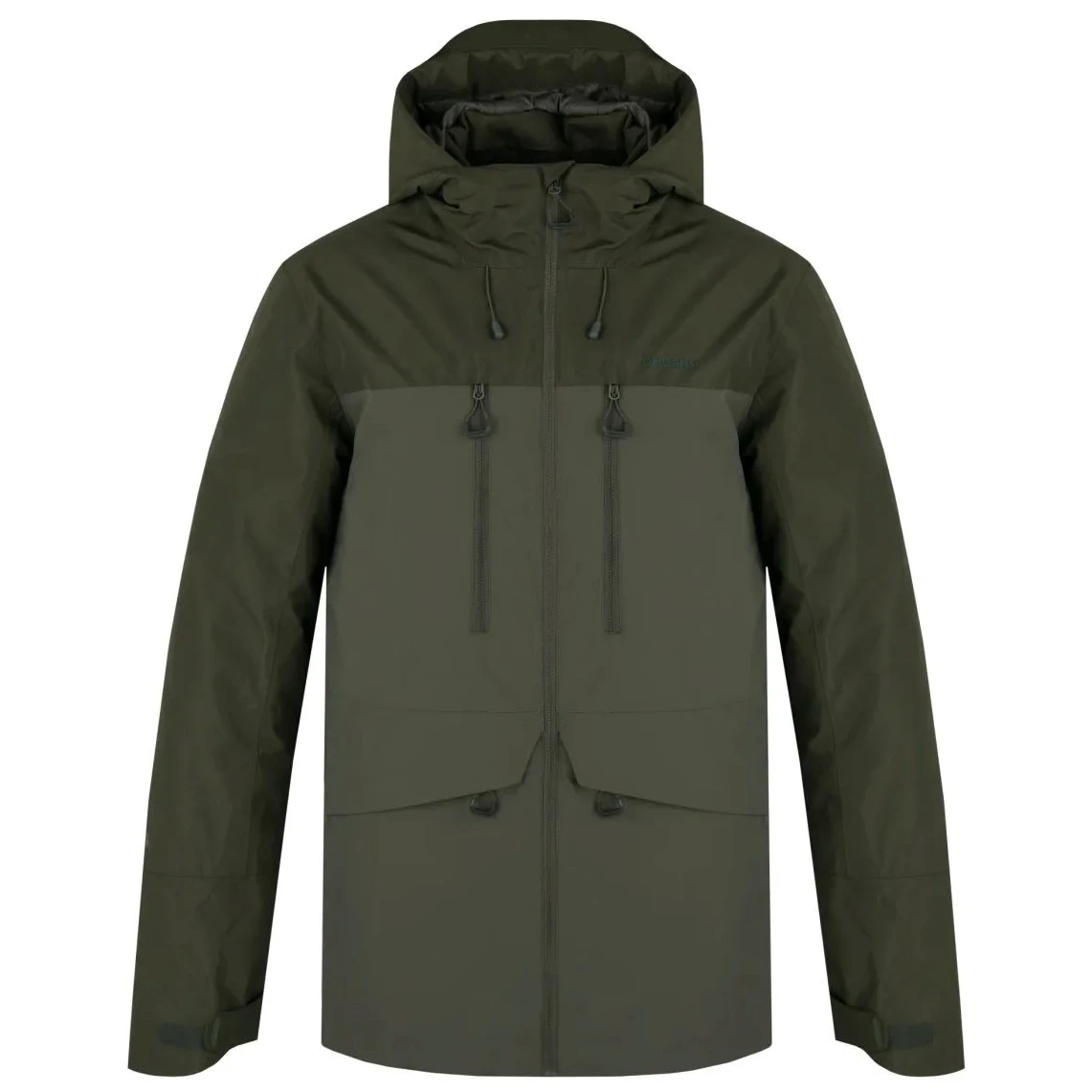 Die Nebet M Herrenjacke ist eine stark isolierte Hardshelljacke , die für extreme Bedingungen entwickelt wurde, bei denen zuverlässiger Schutz vor Kälte und Feuchtigkeit erforderlich ist. Zweilagiges Ripstop-Gewebe mit laminierter Membran und wasserabweisender DWR Behandlung gewährleistet hervorragende Wasserfestigkeit (10.000 mm H₂O) und Atmungsaktivität (10.000 g/m²/24 h). Die Jacke ist mit einem Synthetikfutter und imprägnierten Außenreißverschlüssen ausgestattet, was zu ihrer Strapazierfähigkeit und Langlebigkeit beiträgt. Die gesteppte Innenklappe des Hauptreißverschlusses und ein Fleece-Einsatz im Nackenbereich erhöhen den Wärmekomfort.
