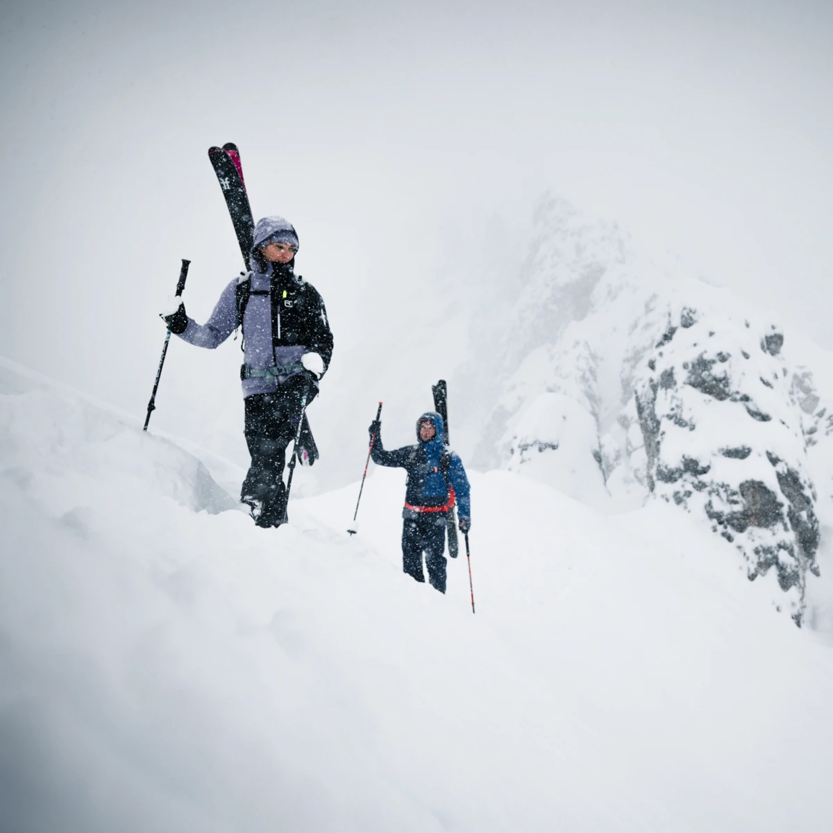 Stauraum bieten eine große Brusttasche und eine Schultertasche zur Aufbewahrung eines Skipasses. Hinzu kommt der hohe Kragen, der sich auf der Innenseite aus einem angenehmen und wärmenden Merino Mesh -Material befindet, das die Feuchtigkeit aus der Atemluft aufnimmt, nicht friert und auch im nassen Zustand bequem ist.