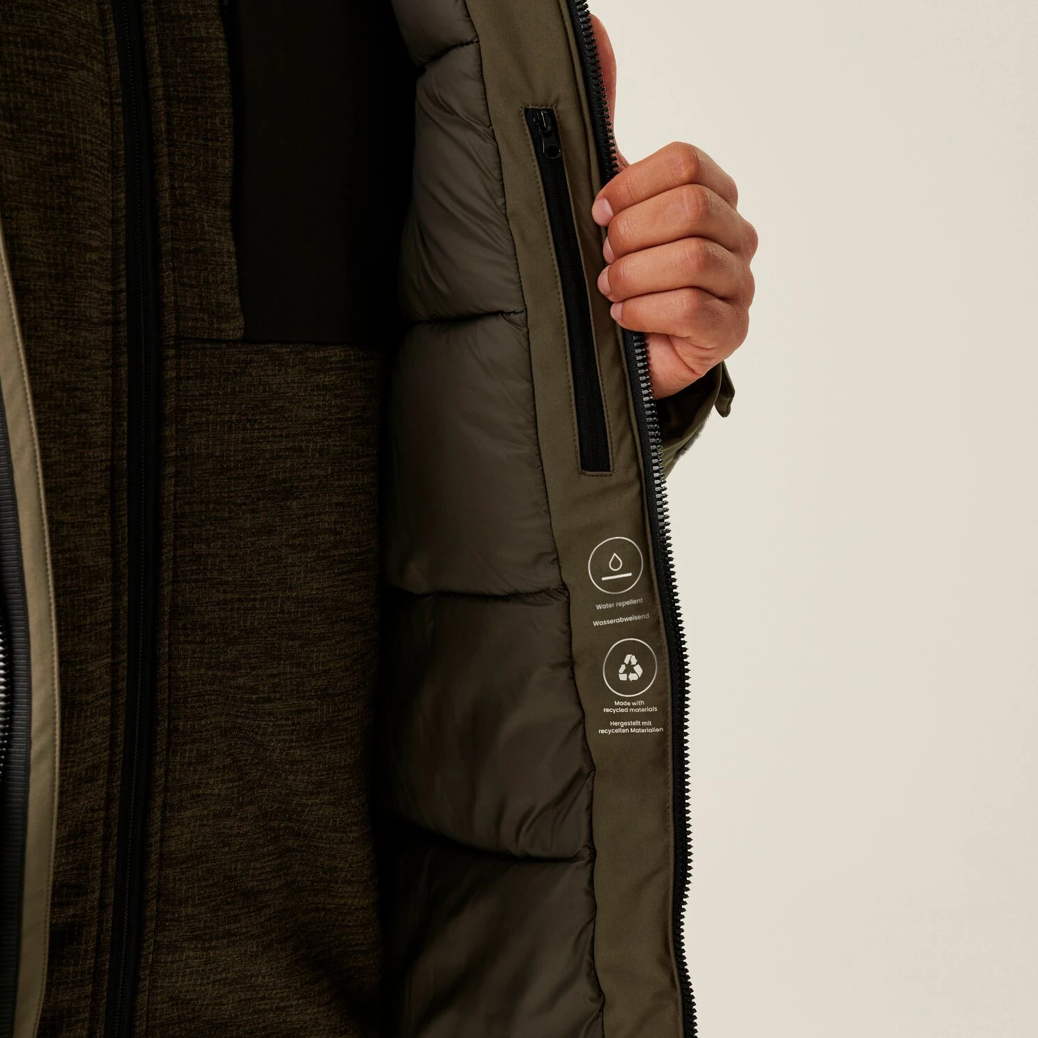 Hochwertige recycelte synthetische Daunenisolierung ohne Verwendung von Federn für maximalen Wärmekomfort.