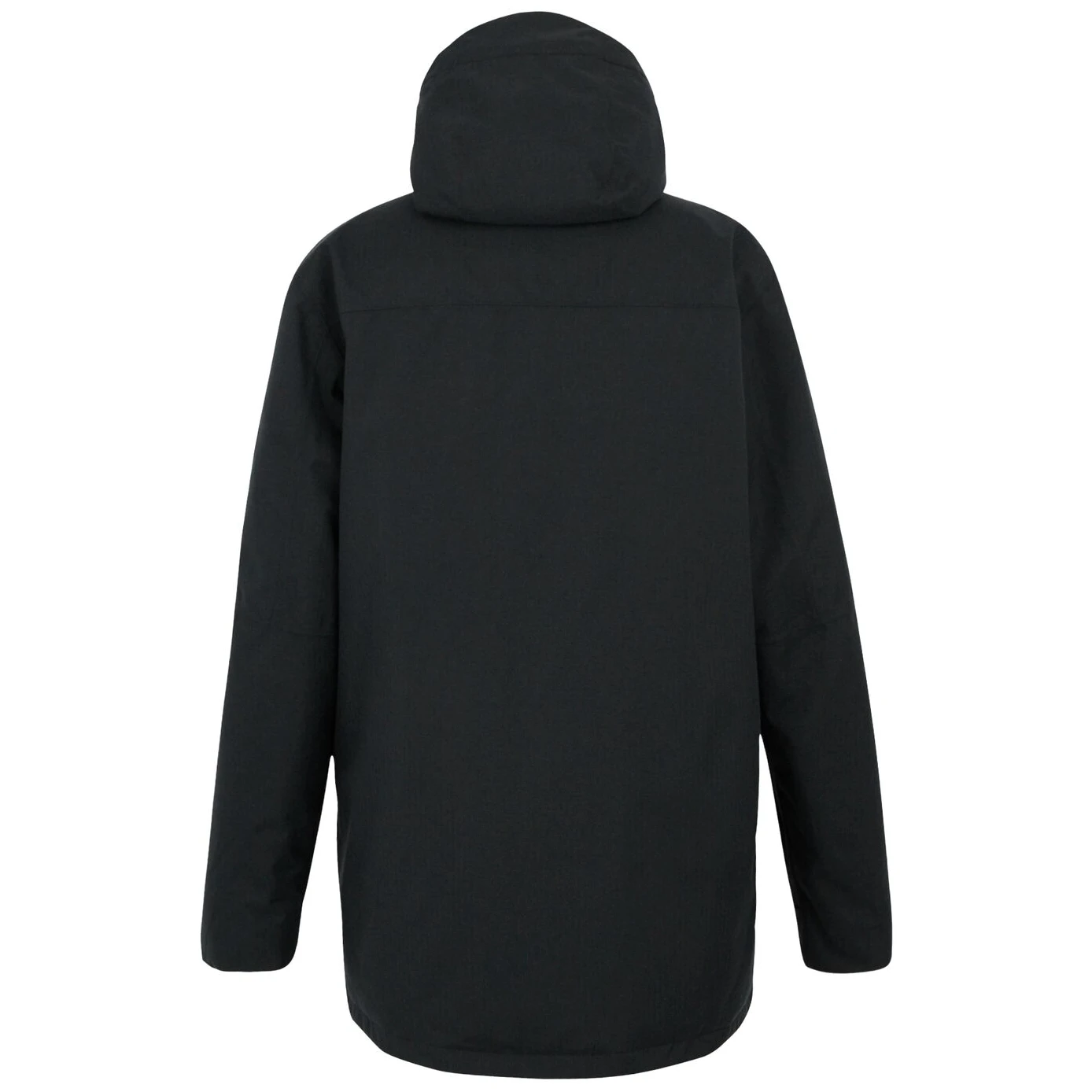 Es besteht aus dem wasserdichten und atmungsaktiven Isotex 10000-Gewebe, das dank verschweißten Nähten und einer äußeren wasserabweisenden Behandlung maximalen Schutz vor Regen garantiert. Von außen hat der Stoff eine wollartige Optik. Eine mittlere synthetische Isolierung wärmt, ohne dass die Jacke an Leichtigkeit verliert. Die Innenseite besteht aus einem Polyamid-Futter mit isolierten Einsätzen. Eine verlängerte Kapuze mit Einstellmöglichkeiten bietet zusätzlichen Schutz und lässt sich je nach Bedarf individuell anpassen, ebenso wie die äußeren verstellbaren Bündchen und die inneren Manschetten. Die Jacke ist mit mehreren praktischen Reißverschlusstaschenausgestattet, die ausreichend Stauraum für Ihre Wertsachen bieten.