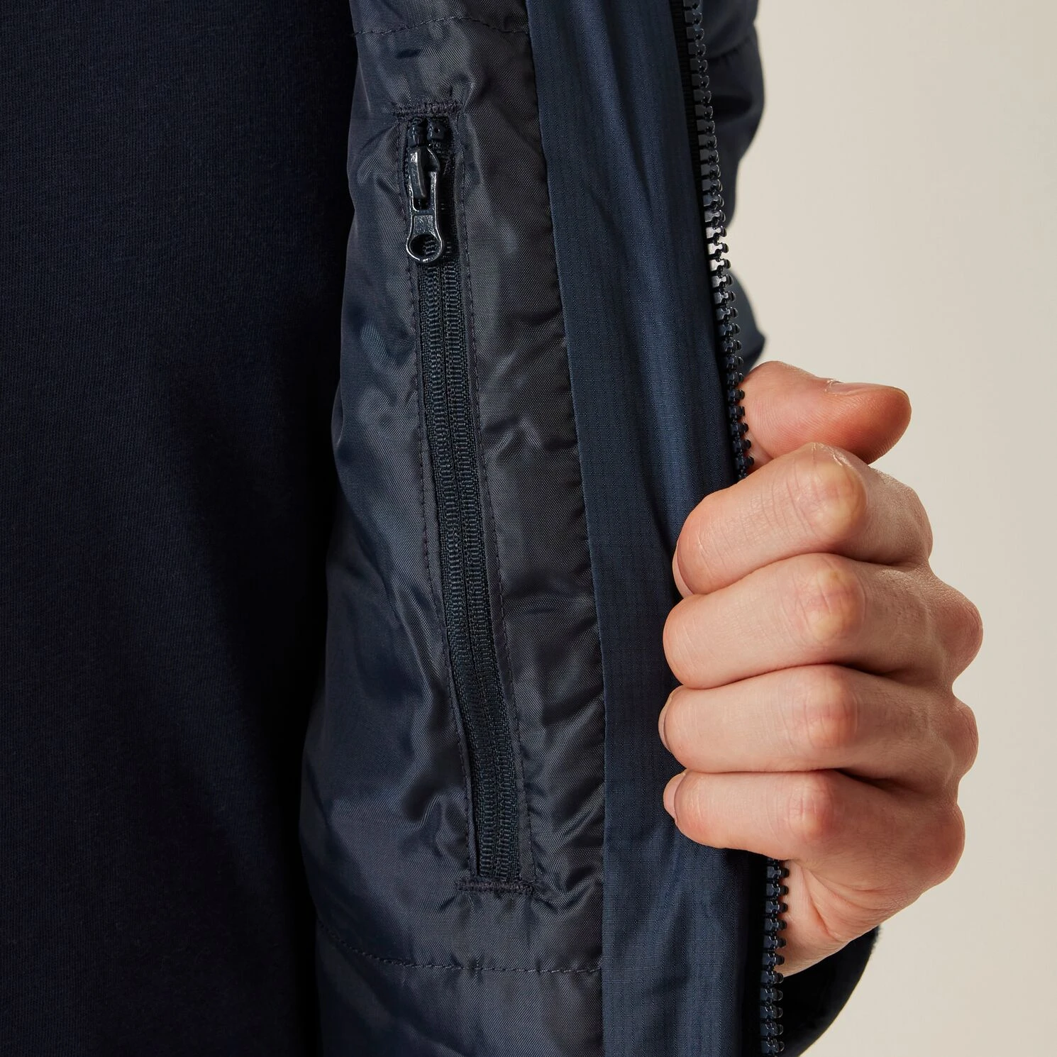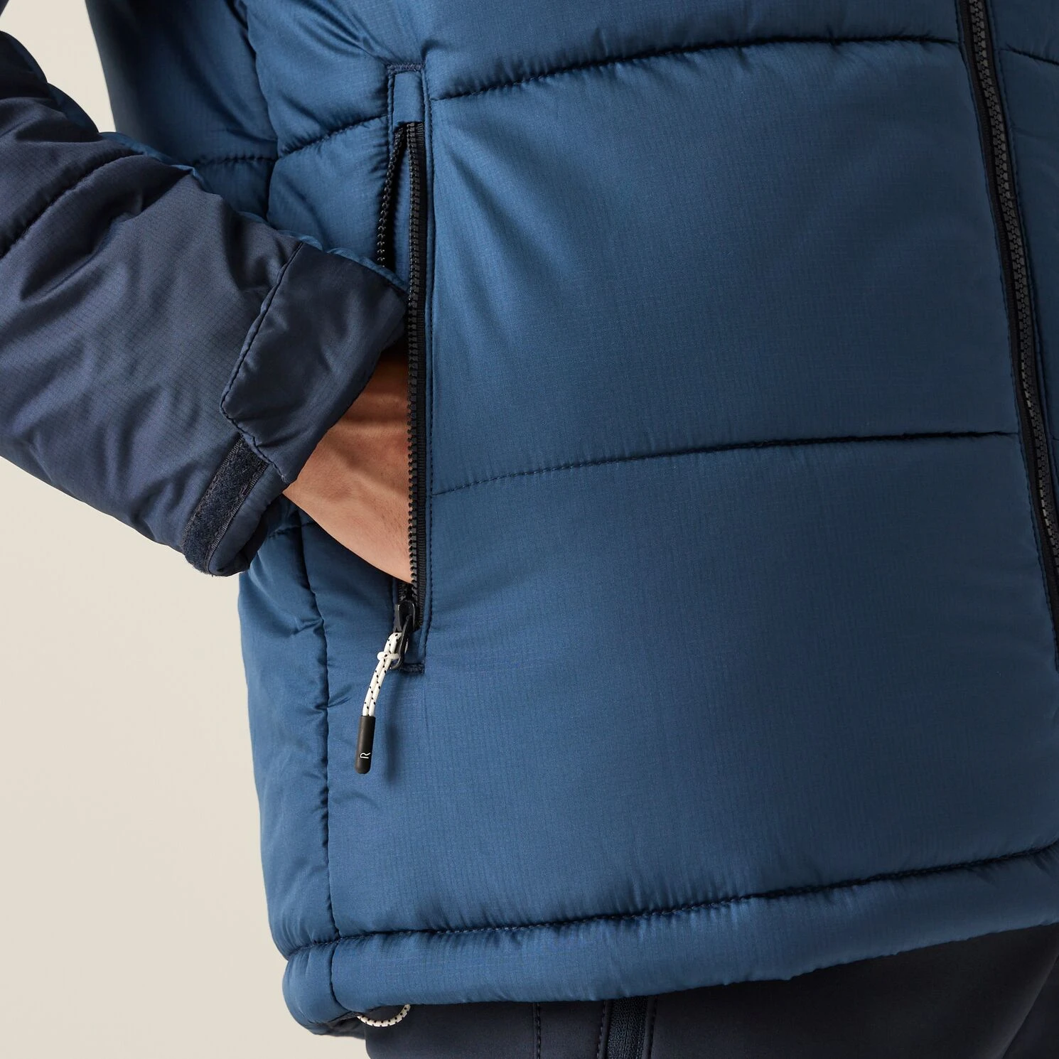 Vorne mittiger Reißverschluss mit Ablaufkanal für besseren Schutz vor Nässe.