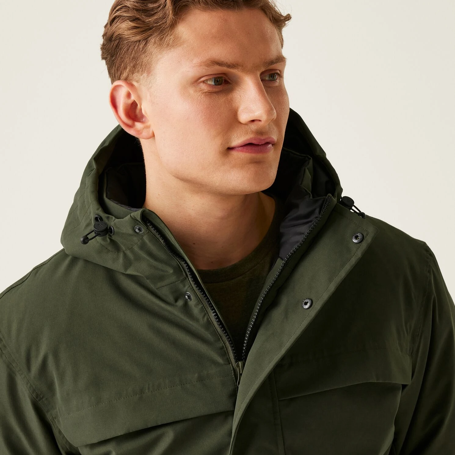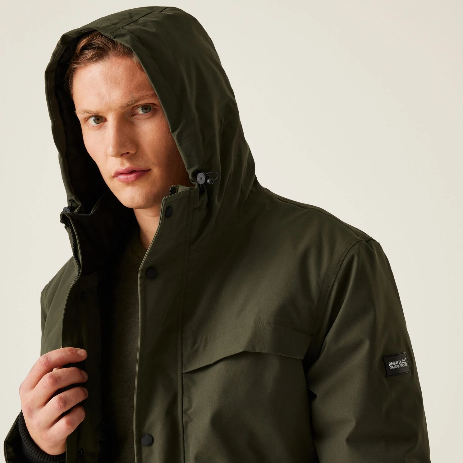 Die Jacke besteht aus dem wasserdichten und atmungsaktiven Gewebe Isotex 10000 , das mit einer Atmungsaktivität von 10.000 g/m²/24 Stunden hervorragenden Schutz vor Regen und Wind bietet. Eine dauerhaft wasserabweisende Beschichtung und versiegelte Nähte halten Feuchtigkeit ab, während die mittelschwere recycelte Thermoguard-Isolierung Wärme und Komfort bietet. Verstellbare Kapuzen, Trennwände und praktische Taschen verleihen der Jacke nicht nur Funktionalität, sondern auch Style.