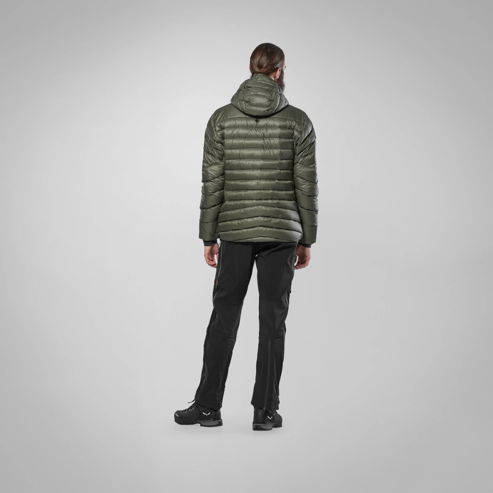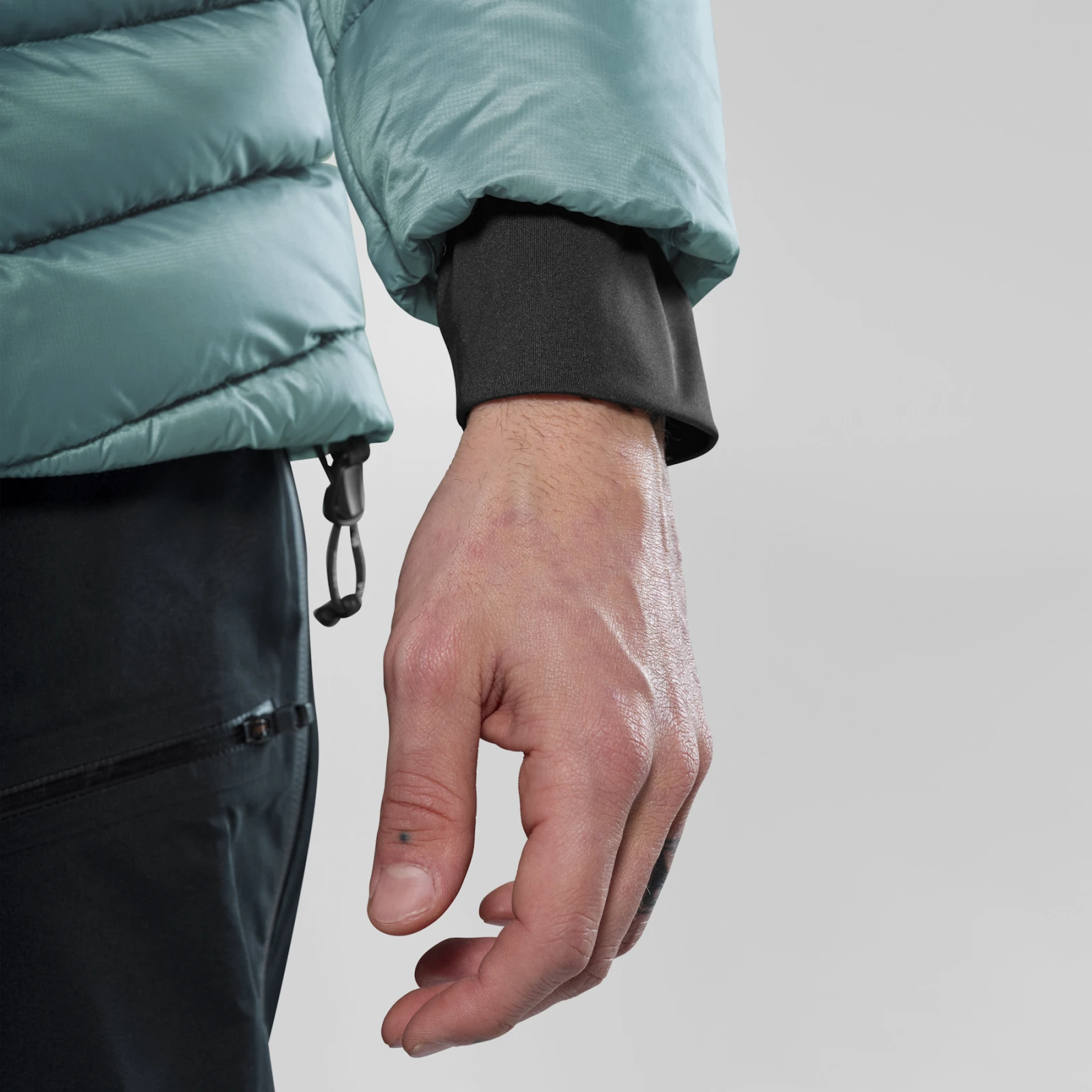 Egal, ob Sie sie als isolierende Mittelschicht oder als Außenschicht verwenden, die Entendaunen mit 750er Füllkraft und 90/10 Responsible Down Standard und die Hybridisolierung TirolWool® Responsive sind so positioniert, dass sie den richtigen Grad an Wärmespeicherung bieten, den die verschiedenen Teile der Jacke benötigen. Körper. TirolWool® Responsive wärmt auch bei Nässe, deshalb verwenden wir es an der Kapuze, den Schultern und den Bündchen.