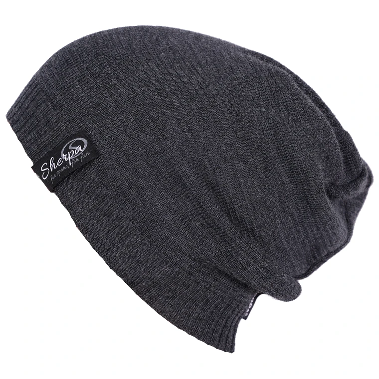 Herrenmütze Sherpa Trevos Merino ist mit einem Lederlogo verziert. Es hat eine Universalgröße.