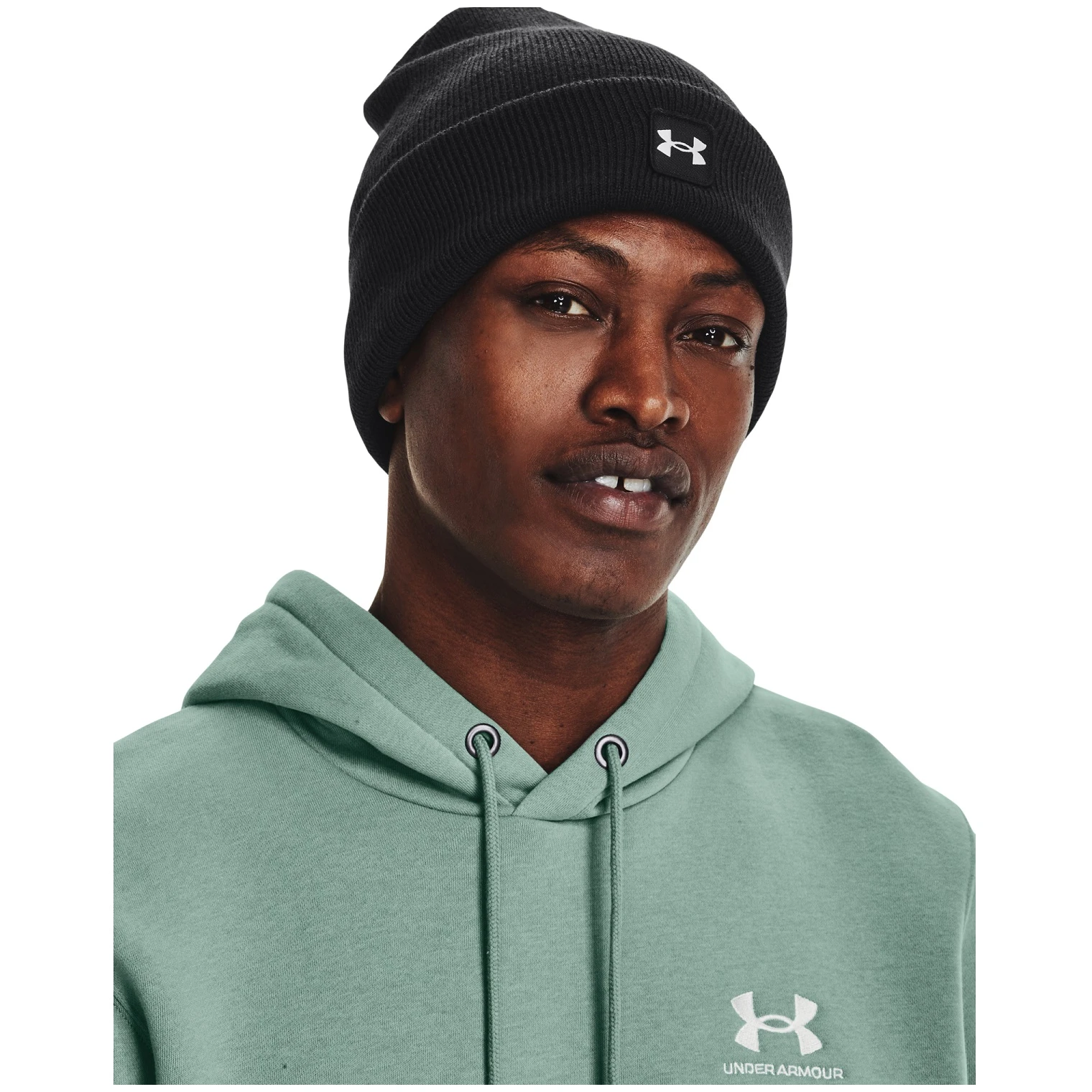 Halftime Cuff Cap der Marke Under Armour aus geripptem Acrylstoff. Das Material leitet den Schweiß sehr gut ab und trocknet daher sehr schnell. Der Saum ist mit einem gewebten U-Logo-Patch verziert.UND.