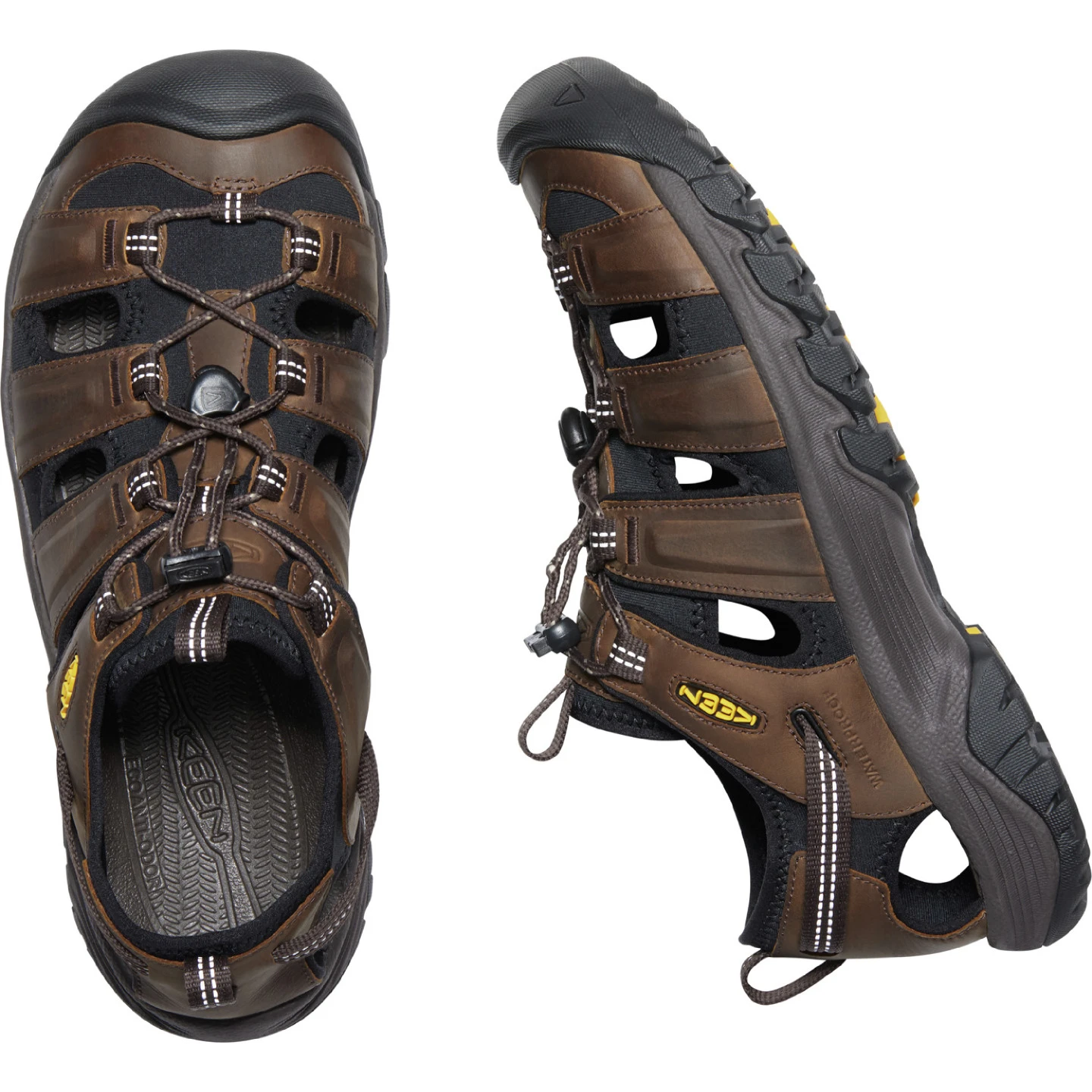 Herren- Targhee III-Sandalen von Keen haben ein Obermaterial aus hochwertigem Leder. Dieses Leder hält Witterungsbedingungen unbeschadet stand. Es trocknet schnell, nachdem es nass geworden ist. Es wurde gewissenhaft in einer zertifizierten Gerberei hergestellt. Innensohle und Zwischensohle aus EVA für Komfort im Alltag. Die Sohle besteht aus strapazierfähigem Gummi.