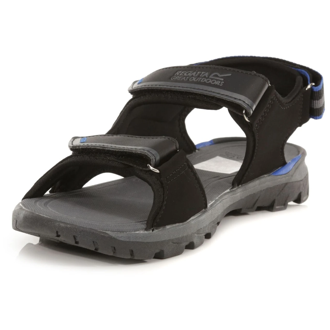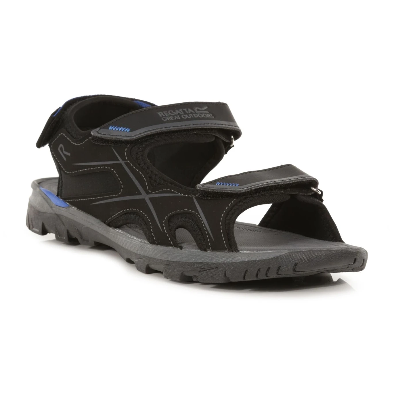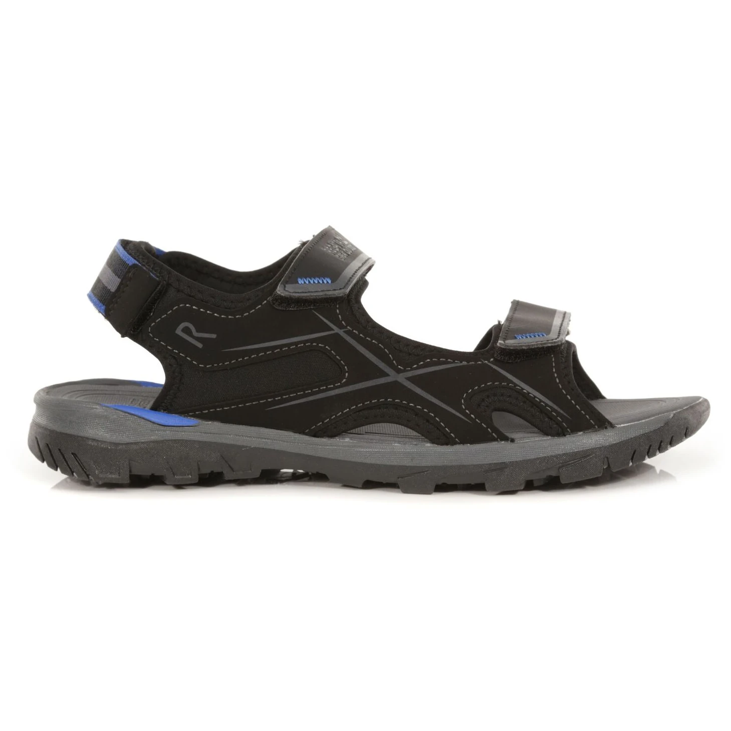 Die eleganten und bequemen Kota Drift Herren-Sandalen des Herstellers Regatta vereinen leichtes, sportliches Mesh mit einer strapazierfähigen Sohle zu alltagstauglichen Sommerschuhen, die eine ideale Wahl für den Alltag in der Stadt und zum Wandern sind. Das Obermaterial besteht aus Polyurethan mit leichtem Sport-Mesh und ist mit Elasthan gefüttert, um eine reibungslose Passform zu gewährleisten, die sich eng an den Fuß schmiegt. Die Schuhe bieten außerdem einen geformten Stabilisierungsarm am Rist und eine leichte, rutschfeste TPR-Sohle, die auch auf unebenem Untergrund Stabilität gewährleistet.