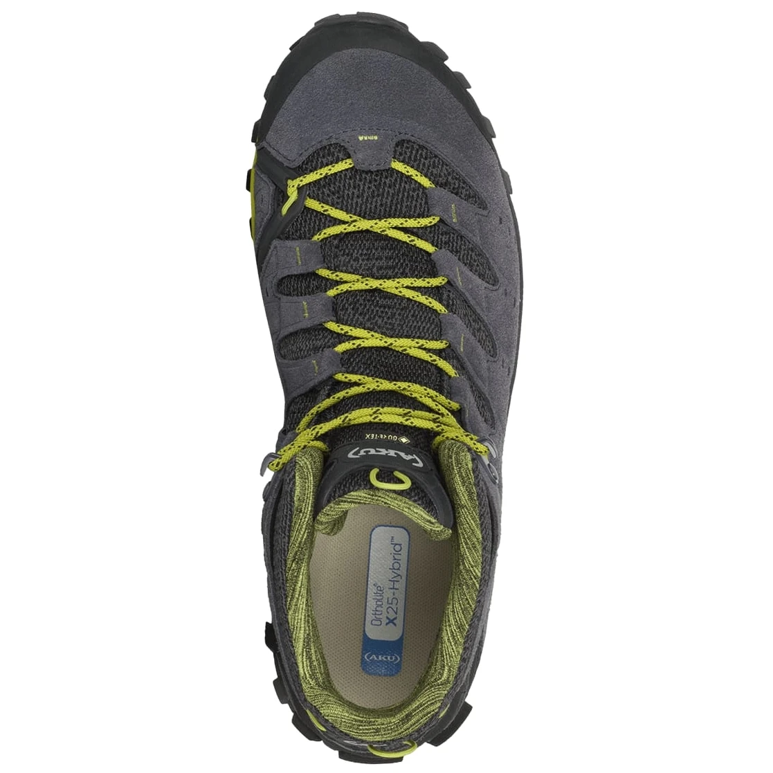 Das Schuhgewebe besteht aus Air 8000, einer firmeneigenen Technologie Aku und gewährleistet eine bis zu 11-mal bessere maximale Atmungsaktivität als herkömmliche Materialien. Die bewährte Gore-Tex-Membran verhindert das Eindringen von Wasser und hält die Fußtemperatur konstant. Aku Alterra Lite Mid GTX sind mit dem IMS 3-System ausgestattet, was für dreifache Stoßdämpfungsteht. Die Innensohle nutzt Minimierungstechnologie aus EVA -Material. Dank dieser Technologie ist ein sicheres Auftreten gewährleistet.