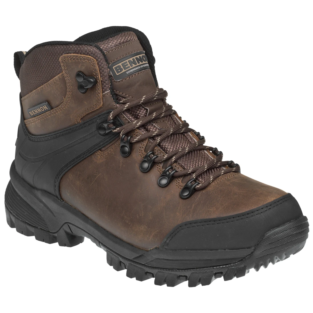 Bequemer, vielseitiger, knöchellanger Outdoor-Schuh Castor High von Bennon mit einem Obermaterial aus strapazierfähigem Crazy Horse-Vollnarbenleder . Dank Anti-Kickback-Zehenschutz bist Du vor Beschädigungen des Obermaterials im Vorderteil geschützt. Für guten Halt auch beim Gehen in schwierigem Gelände sorgen die Terrain-Sohle und die stabilisierende Knöchelstütze.