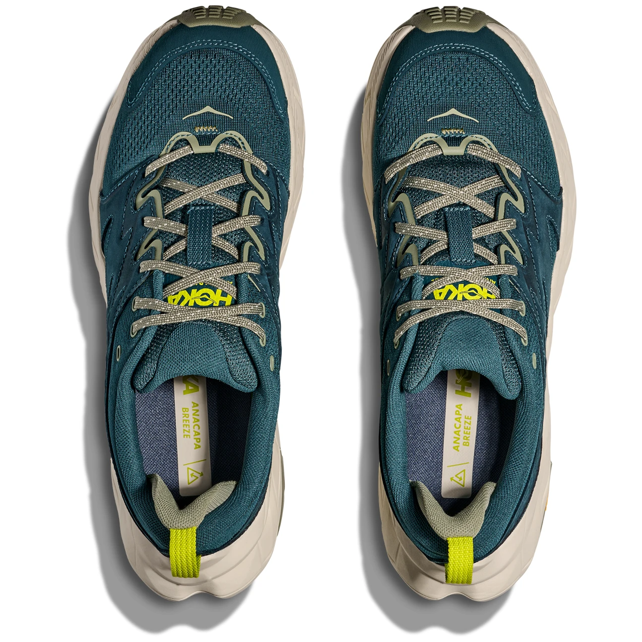 Herren Wanderschuh Anacapa Breeze Low vom französischen Hersteller Hoka. Das Obermaterial des Schuhs besteht aus atmungsaktivem Mesh aus recycelten Materialien. Die leistungsstarke EVA -Zwischensohle bietet hervorragende Dämpfung und ganztägigen Tragekomfort, zusammen mit einer geformten PU-Einlegesohle mit 50 % Sojaöl. Die HUBBLE®-Ferse bietet noch mehr Dämpfung bei jedem Schritt und einen noch sanfteren Übergang von der Ferse zu den Zehen.