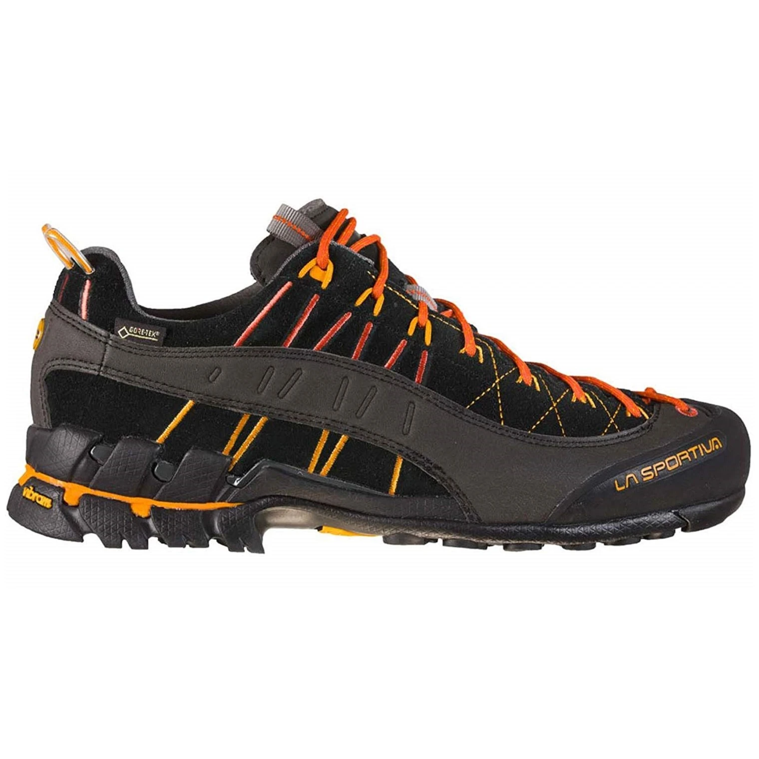Der Hyper GTX der italienischen Marke La Sportiva ist ein durchdachter Herren- Einsteigerschuh , den du beim Begehen eines Klettersteigs oder bei technisch anspruchsvollen Klettertouren zu schätzen wissen wirst. Obermaterial aus Wildleder mit wasser- und windabweisender Gore-Tex® Extended Comfort-Membran. Die Schnürung bis zur Fußspitze sorgt für eine perfekte Fixierung in schwierigem Gelände bei gleichzeitiger Wahrung der Flexibilität. Zusammen mit der ergonomischen Formgebung schmiegen sie sich fest an Ihren Fuß und geben ihm die nötige Stabilität. Die Schuhe sind für schmälere Füßekonzipiert. MEMlex EVA-Zwischensohle mit einer Schicht aus eingespritztem EVA-Schaum an der Ferse zur Stoßdämpfung und „Rock Guard“-Technologie, die vor Steinen schützt und so die Haltbarkeit des Schuhs erhöht. Vibram ® Idrogrip-Sohle mit Impact Brake System ® mit Kletterzone an der Spitze und hervorragender Traktion.