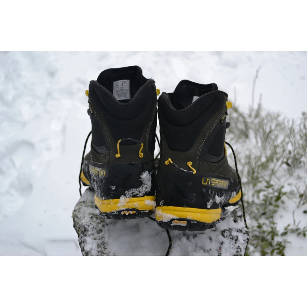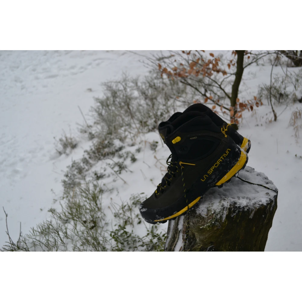 „Auch wenn ich den TX5 GTX La Sportiva Schuh nicht so häufig getragen habe wie ursprünglich geplant, bin ich sehr zufrieden mit ihm. Bei regelmäßigem Tragen habe ich nichts zu beanstanden. Ich glaube, dass der nächste Winter mehr Schnee bringen wird und ich werde sie unter extremeren Bedingungen auf Schneeschuhen testen.“