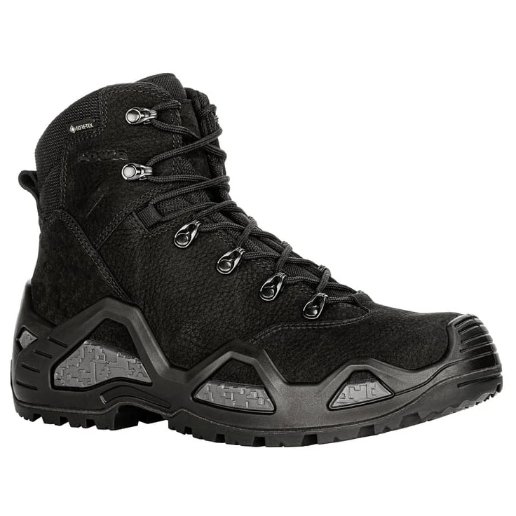 Herrenstiefeletten Lowa Z-6N GTX C haben eine leichte halbhohe Konstruktion mit einer wasserdichten Gore-Tex-Membran und eignen sich für Bewegungen auch in schwierigem Gelände. Die Eigenschaften des Schuhs basieren auf bewährten Vorgängermodellen, allerdings verfügen die Z-6N GTX C-Schuhe über eine höhere Torsionsstabilisatorsteifigkeit, die für mehr Stabilität sorgt. Geschlossene Schnürsenkelösen eignen sich auch zum Fallschirmspringen. Bei schnellem Abseilen ist in der Sohle ein spezieller Keil eingearbeitet, der den Schuh schützt. Die Sohle besteht aus gespritztem PU-Material mit einem Monowrap -Schutzrahmen und einer LOWA® Cross Duty-Profilsohle, die über einen steiferen Stabilisator und einen gehärteten Mittelteil verfügt.