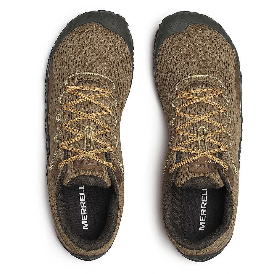 Herren-Barfußschuhe Vapor Glove 6 von Merrell verfügen über neue Features, die zu einer natürlicheren Fußposition beitragen und für ein wirklich minimalistisches Laufgefühl beim Laufen auf unbefestigten Wegen sorgen. Das Obermaterial besteht aus 100 % recyceltem Mesh, das durch eine eingenähte Zunge und ein bequemes und atmungsaktives Innenfutter aus recyceltem Material ergänzt wird. Eine äußere Verstärkung im Fersenbereich sorgt für eine optimale Passform am Fuß. Die Schuhe sind außerdem mit Einlegesohlen aus EVA -Schaum ausgestattet, die durch eine antibakterielle NXT-Behandlungergänzt werden.