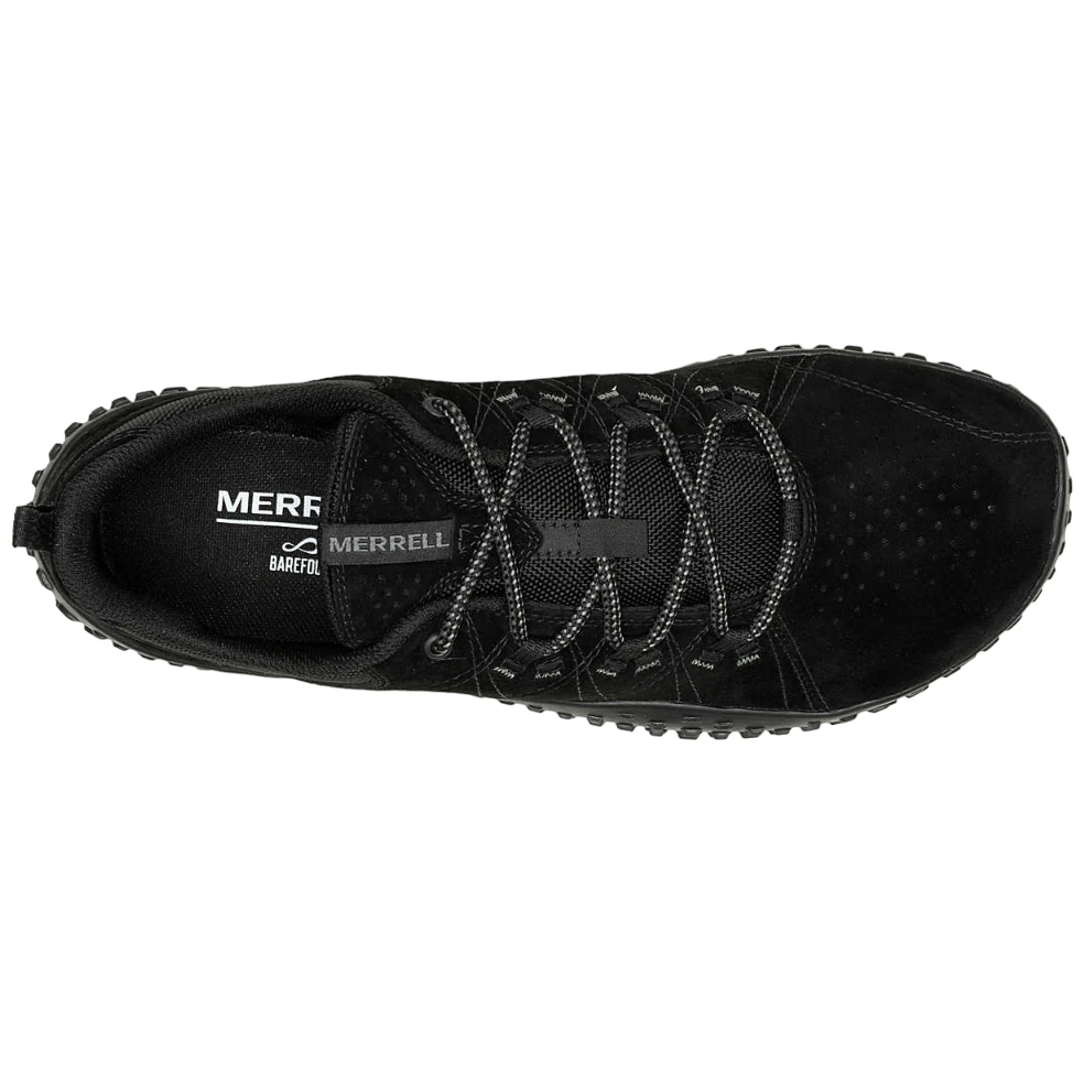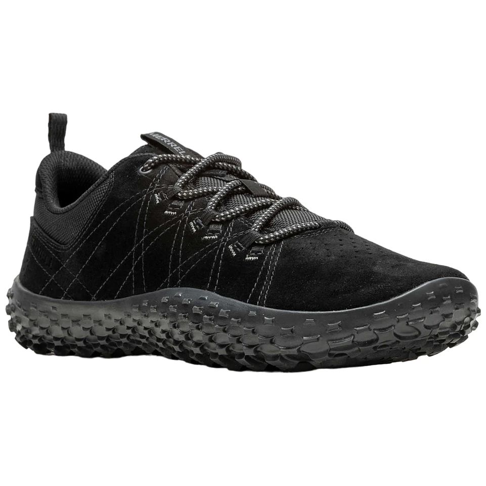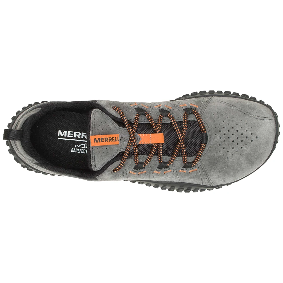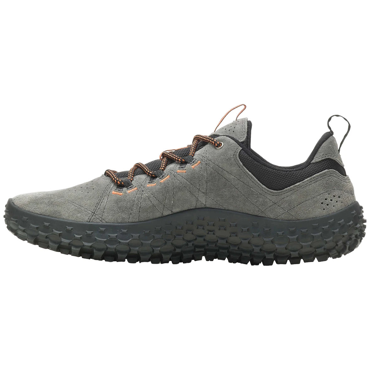 Herren-Wanderschuhe Die Marke Wrapt Mid WP Merrell ist ein universeller Stiefel mit dicker Gummisohle, der zur „Barfuß“-Kollektion gehört. Die Sohle wurde so konzipiert, dass sie die Form des Fußes nachahmt und die gleiche Fußposition gewährleistet wie beim Barfußlaufen.