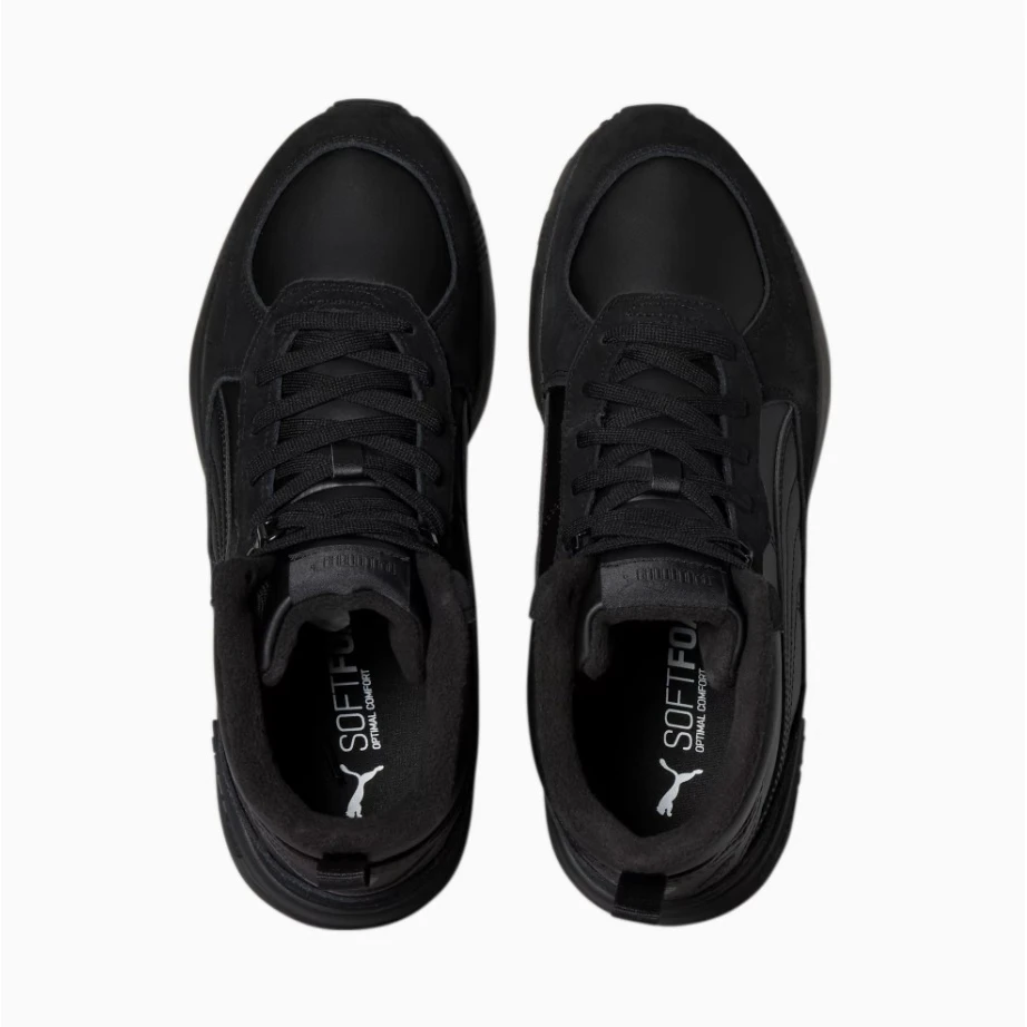 Herrenschuhe Graviton Mid der Marke Puma greifen Designelemente der traditionellen Laufkollektion auf und verleihen ihnen einen entspannten und cleanen Look. Die Schuhe bestehen aus einem Mischmaterial mit einer leichten Gummisohle, bei der die IMEVA-Technologiezum Einsatz kommt, die sich durch geringes Gewicht und hervorragende Stoßdämpfung auszeichnet. Ergänzt wird das Ganze durch eine spezielle SoftFoam+ Einlegesohle im Schuh.