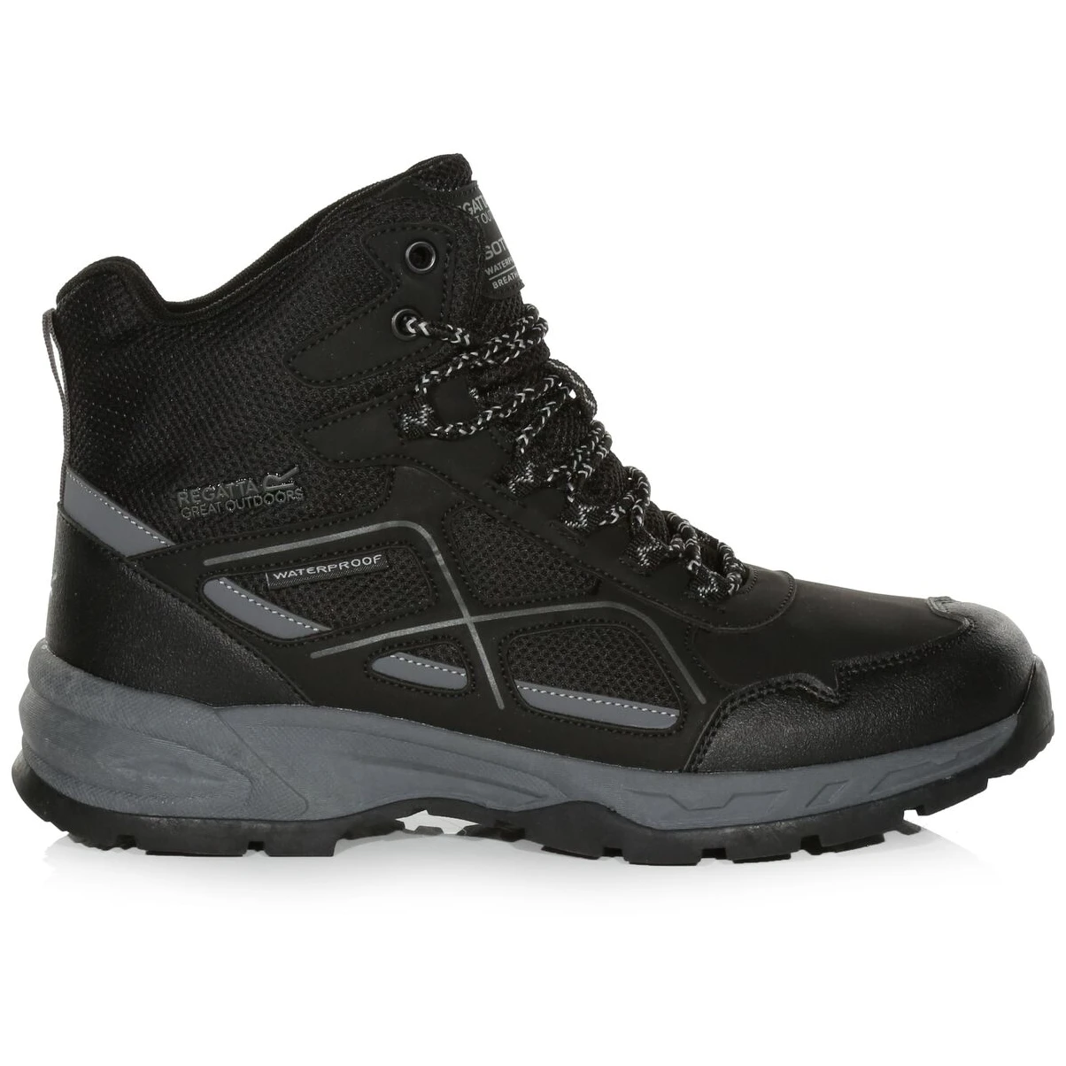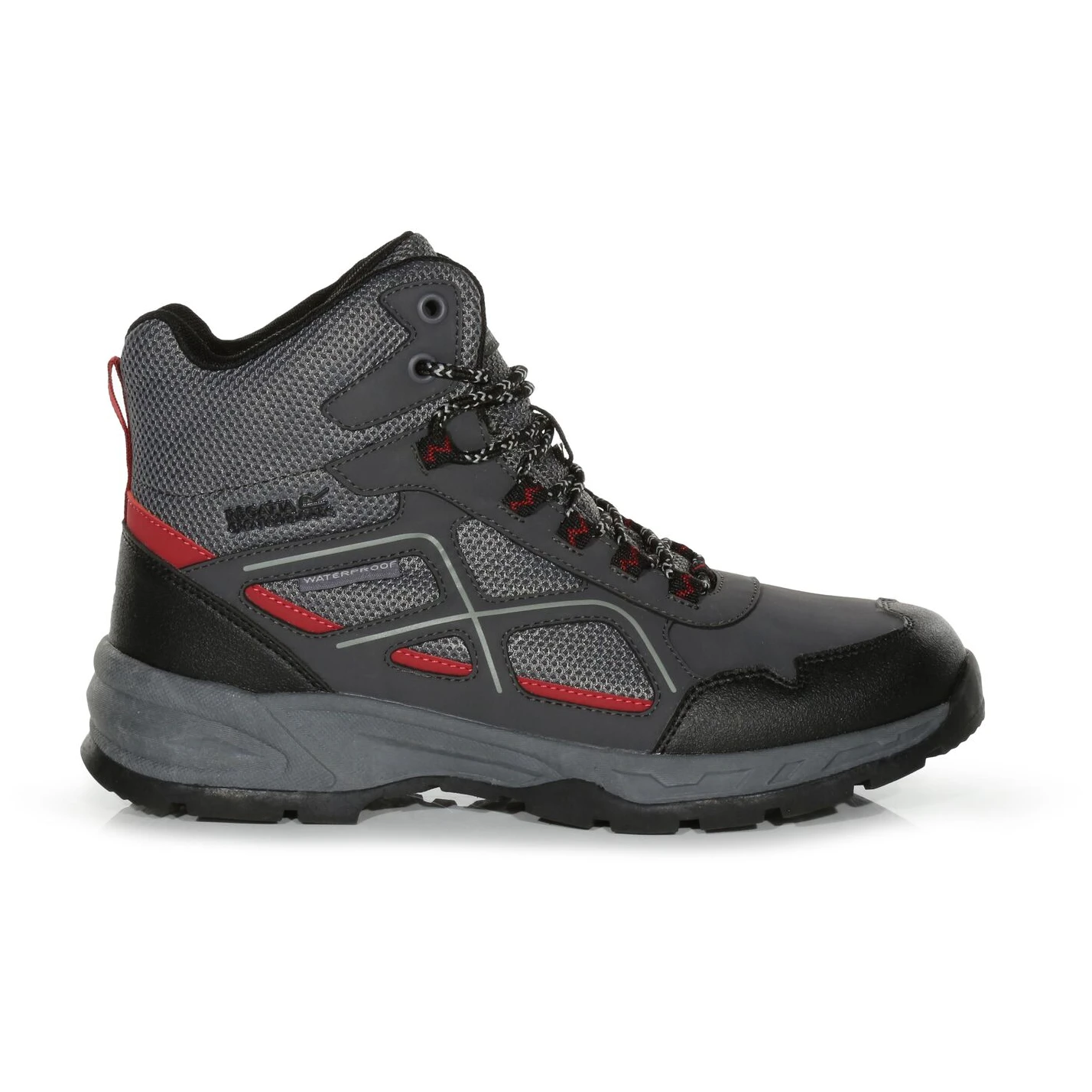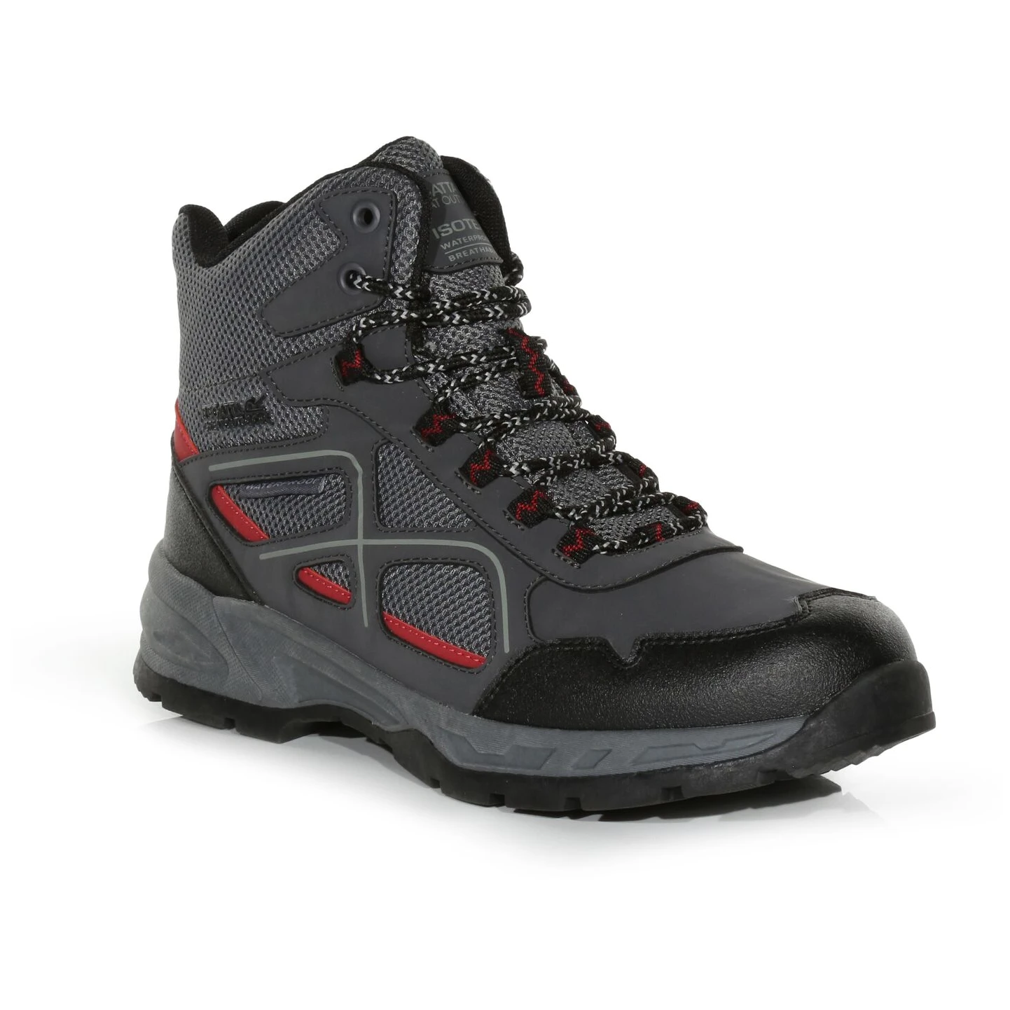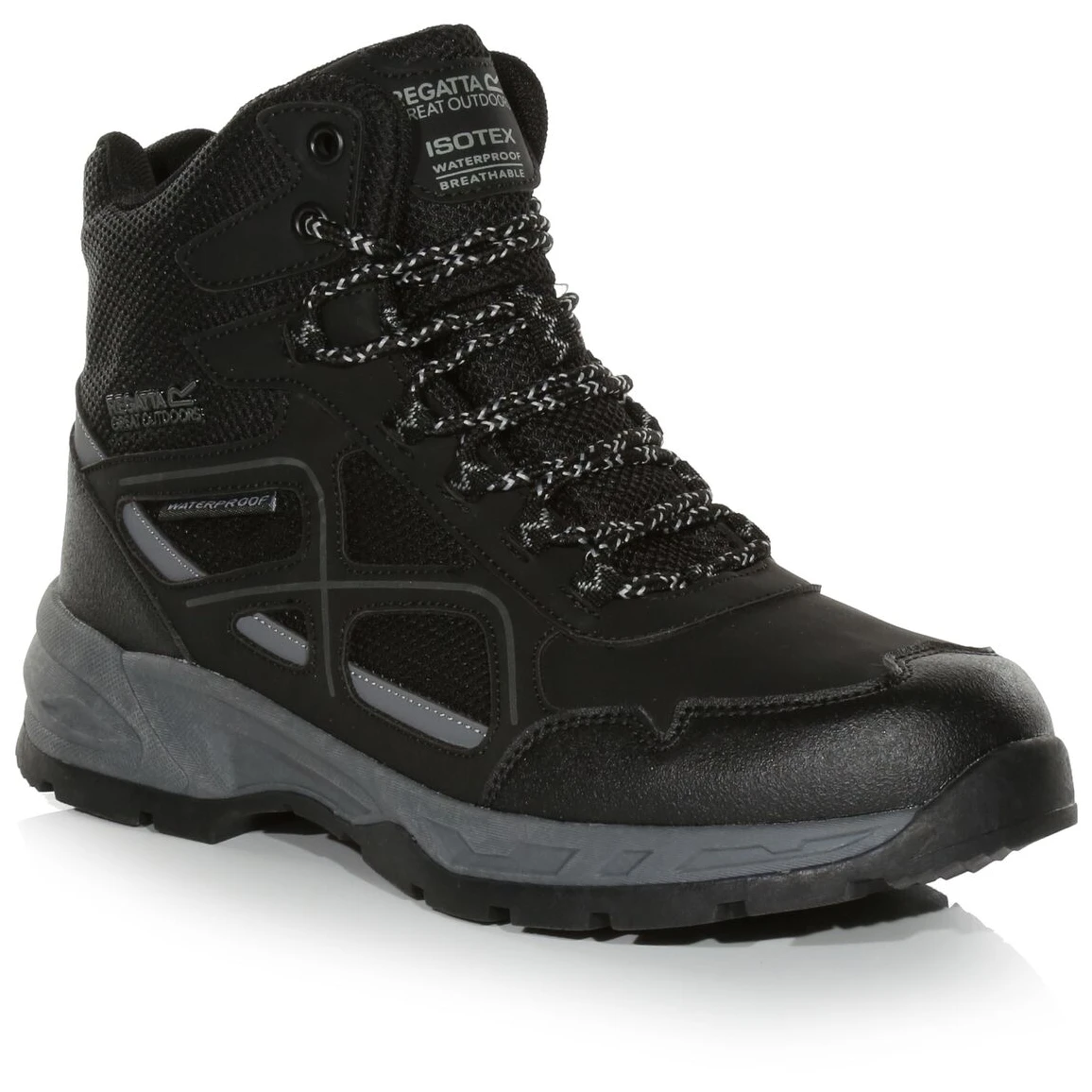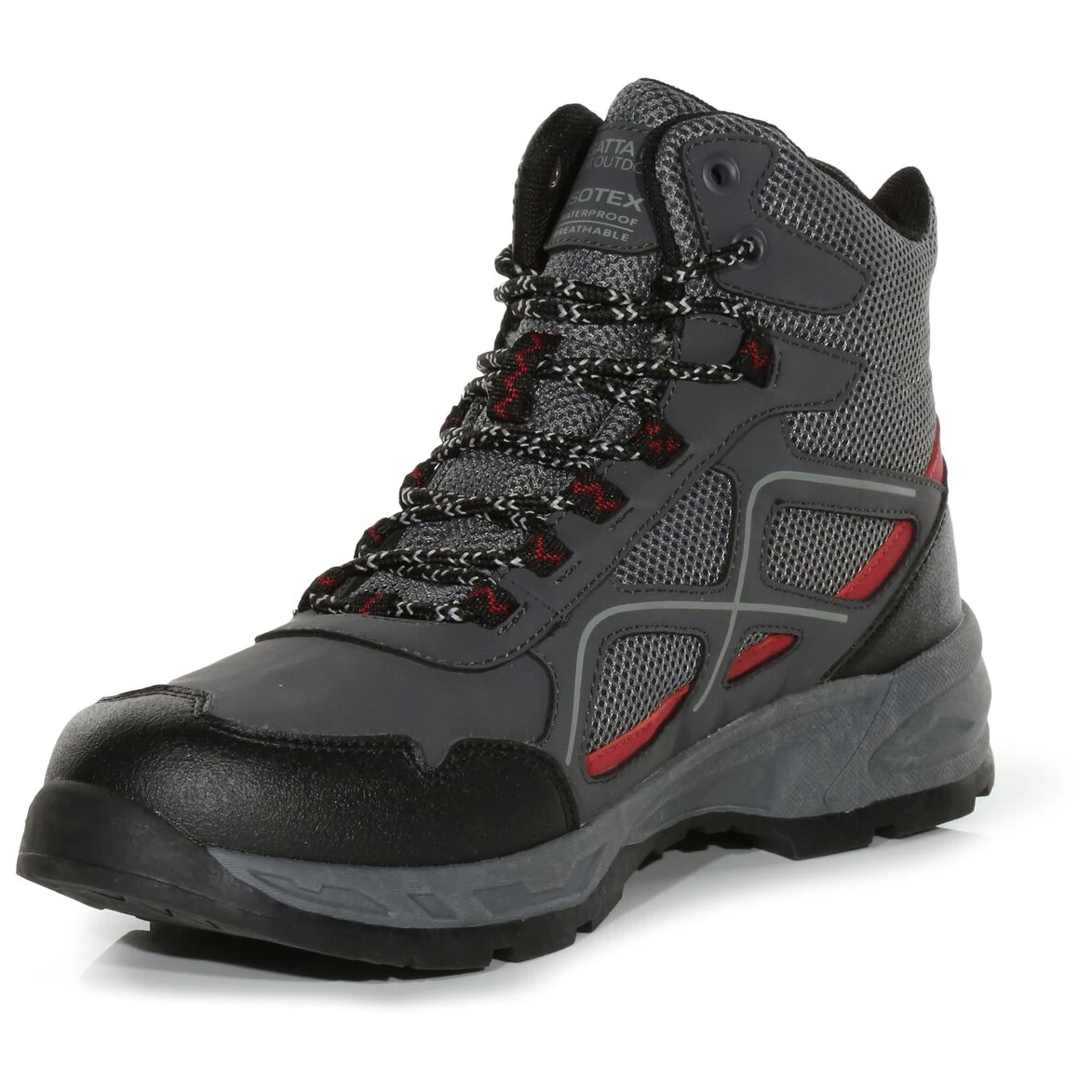 DieHerren-Wanderstiefeletten Vendeavour Boot von Regatta sind ideal für Spaziergänge in der Natur und anspruchsvollere Wanderungen. Das Obermaterial der Schuhe besteht aus strapazierfähigem Polyurethan und atmungsaktivem Mesh. Die Schuhe sind außerdem mit einer wasserdichten, atmungsaktiven und winddichten ISOTEX-Membran mit versiegelten Nähten für perfekte Wasserbeständigkeit ausgestattet. Für Komfort sorgt eine Zwischensohle aus leistungsstarkem EVA -Schaum mit bequemer Innensohle. Die Schuhe bieten außerdem eine Ghillie-Schnürung für einen sicheren Sitz und eine neue TPR-Laufsohle mit abgewinkelten Stollen für besseren Halt.