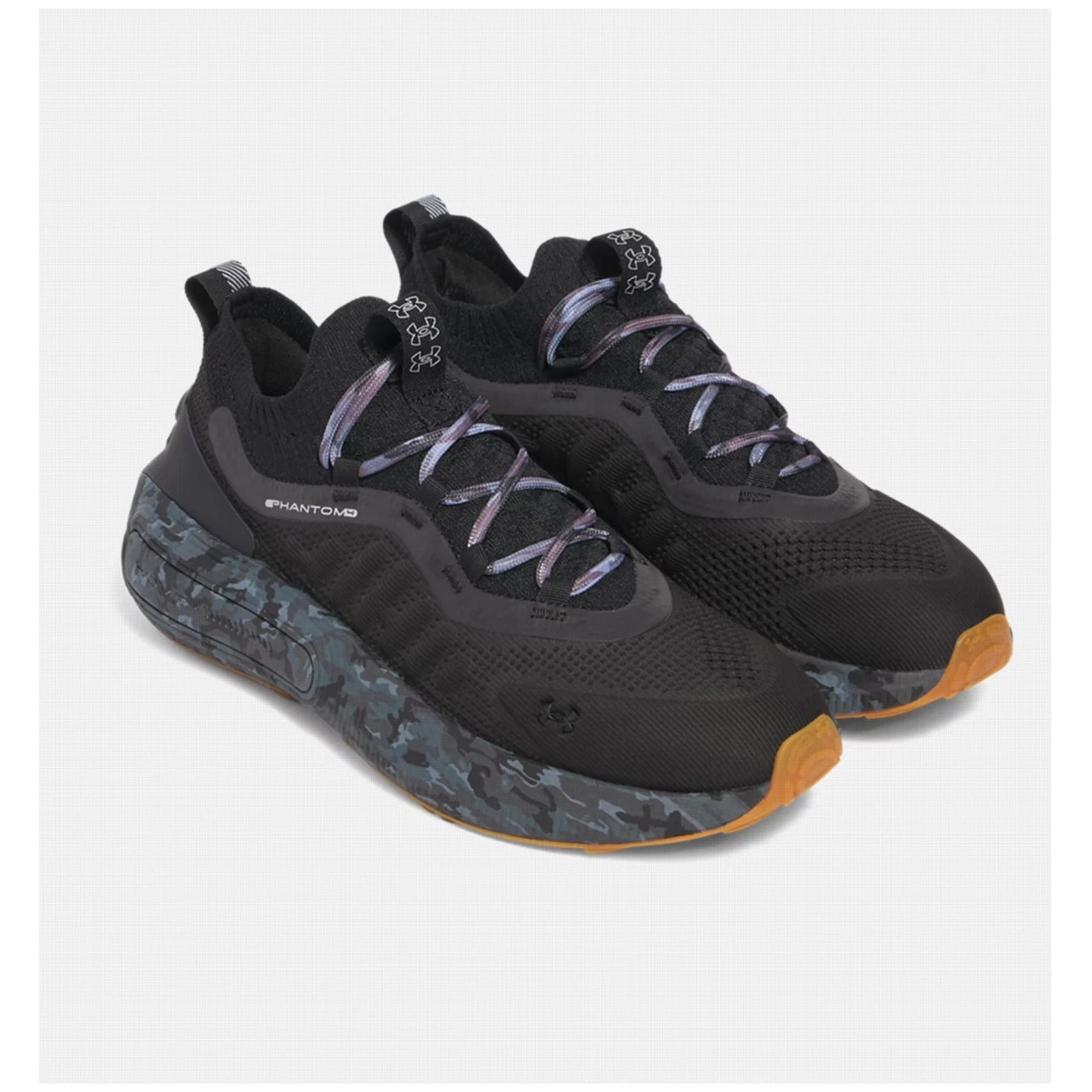 Top Herren Laufschuhe Under Armour Phantom 4 Camo für harte urbane Oberflächen und für Läufer, die eine Balance zwischen Flexibilität und Dämpfung benötigen.