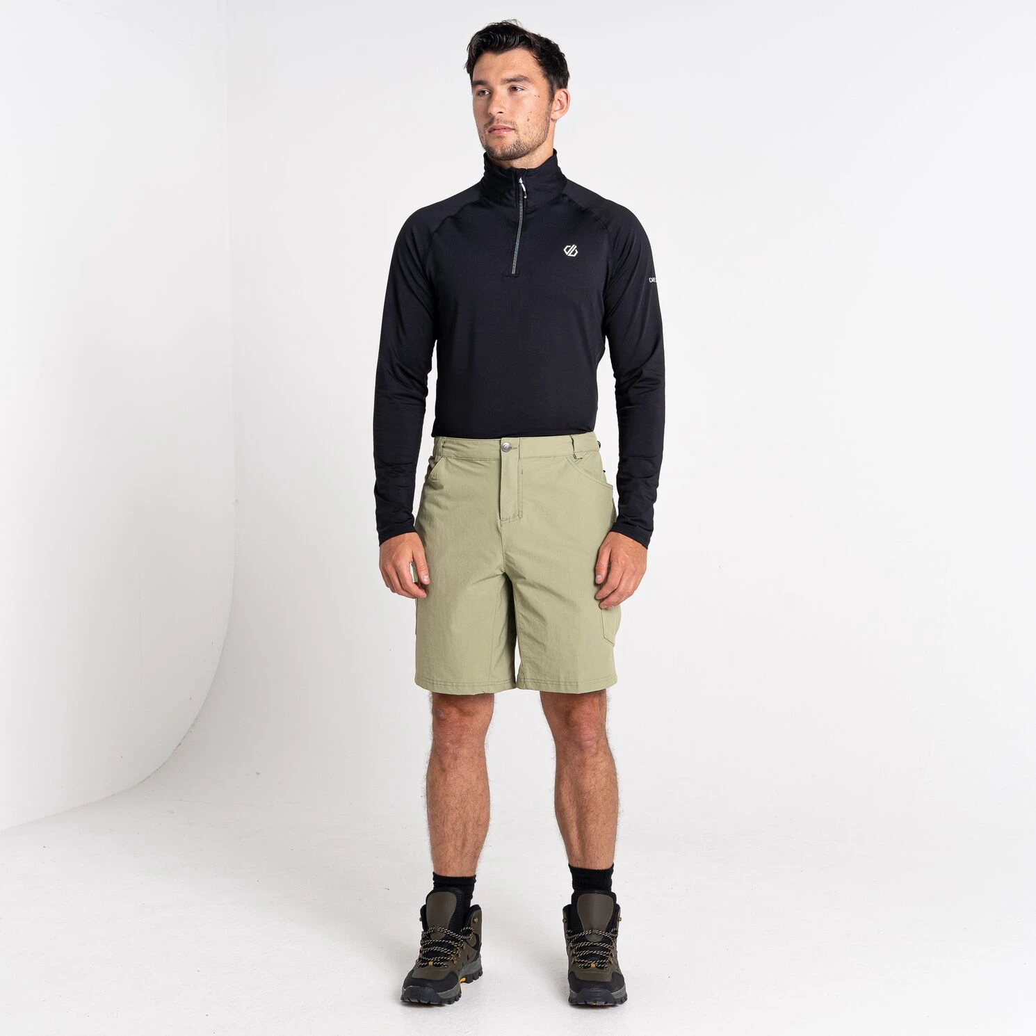 Herren Shorts Tuned In Short der Marke Dare 2b bestehen aus hochwertigen Materialien, die sehr leicht und angenehm zu tragen sind. Sie sind elastisch und schränken Ihre Bewegung nicht ein. Tuned In Shorts haben eine wasserabweisende Beschichtung und trocknen sehr schnell. Den Hosenbund kannst du ganz nach Bedarf verstellen und an den Schlaufen am Bund deine Ausrüstung befestigen, die du immer griffbereit haben möchtest. Die Shorts verfügen über Taschen vorn und hinten und in den Reißverschlusstaschen an den Beinen können Sie Wertsachen verstauen.