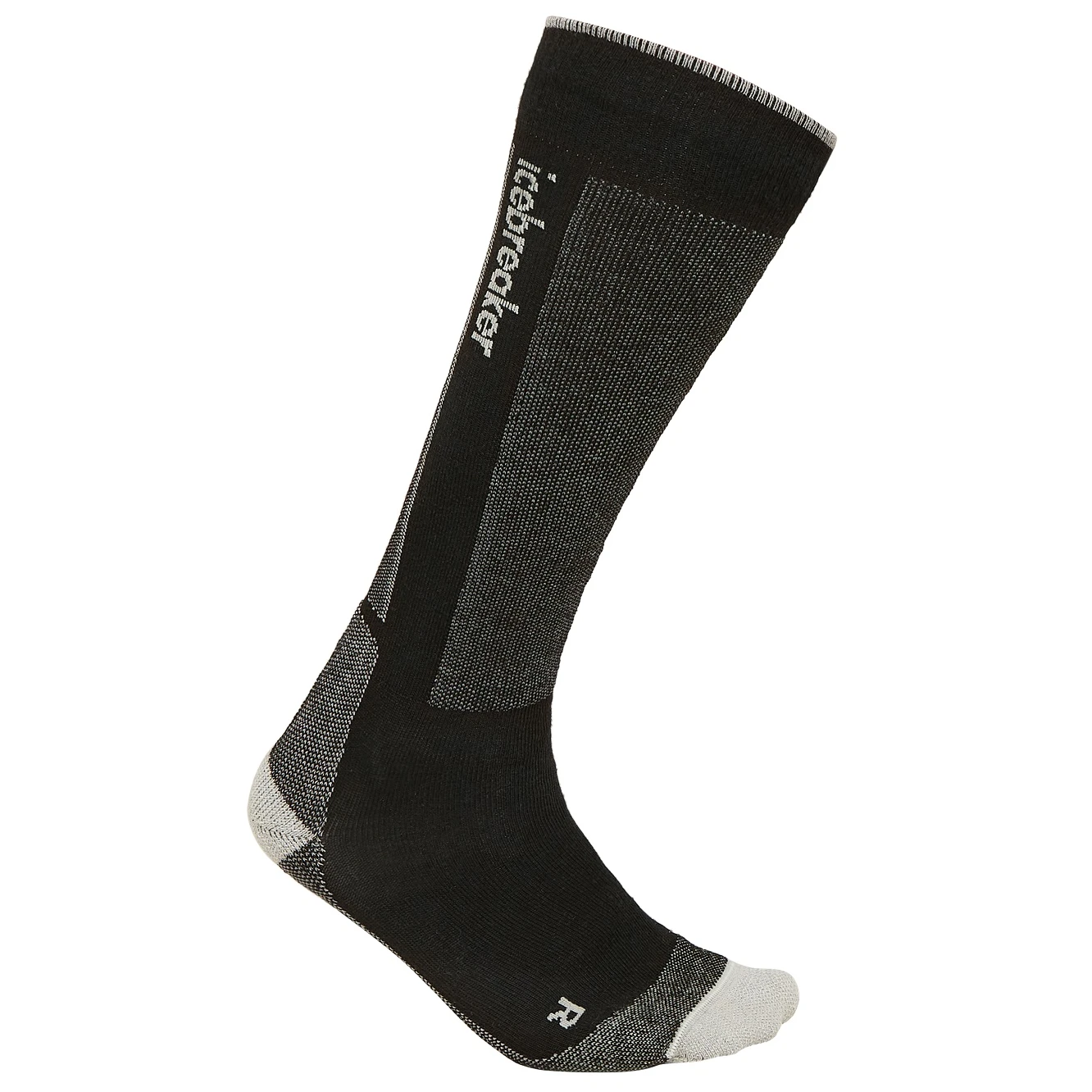 Die Herrenskisocken M Mer Ski+ Light der Marke OTC Icebreaker sind strapazierfähige, elastische und hoch atmungsaktive Socken, die zum Skifahren auf der Piste und im Gelände konzipiert sind. Die strategisch gepolsterte Konstruktion besteht aus einer Mischung aus Merinowolle, Nylon und Elastan. Das verwendete Material ist hoch atmungsaktiv, leitet Feuchtigkeit und Schweiß von der Haut weg, geruchshemmend und antibakteriell. Die Socken sind anatomisch geformt für eine einzigartige Passform am linken und rechten Fuß und bieten vor allem Halt im Knöchel-, Achillessehnen- und Ristbereich.