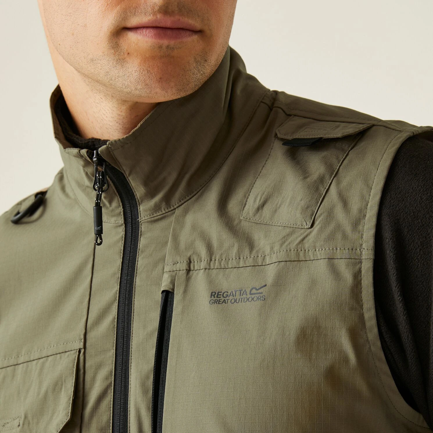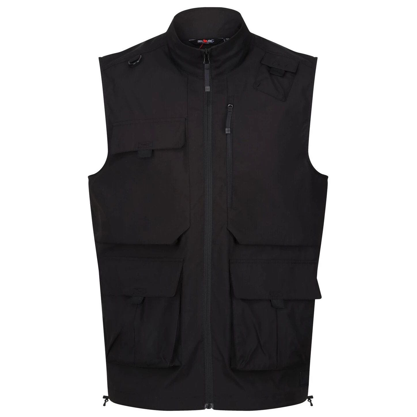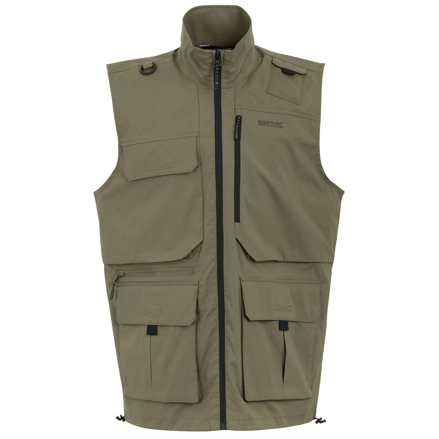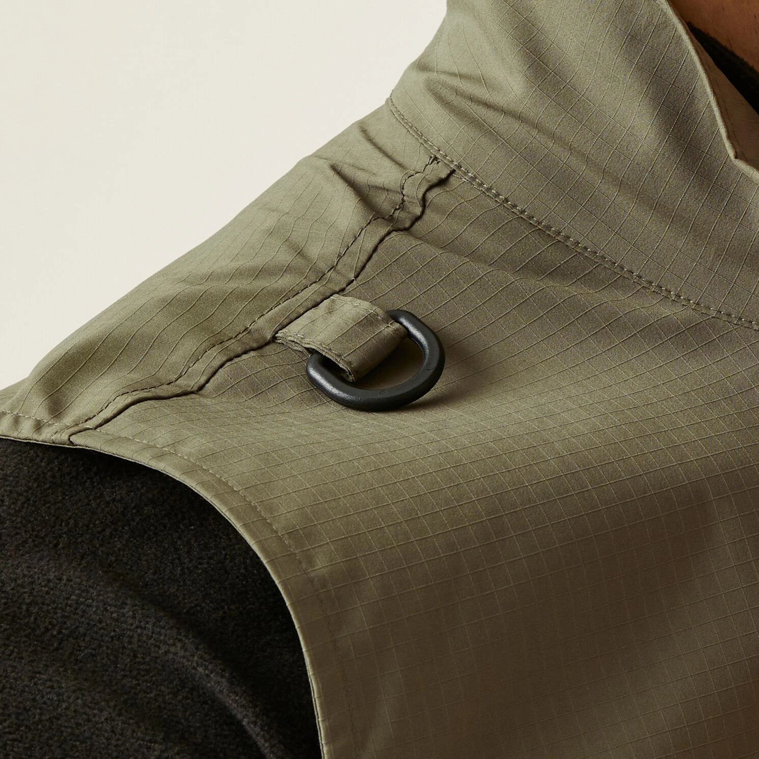 Die Weste bietet mehrere aufgesetzte Taschen mit Klettverschluss sowie eine Brusttasche mit Reißverschluss zur sicheren Aufbewahrung von Kleinigkeiten. Der D-Ring an der Schulternaht ermöglicht das Anbringen von Schlüsseln oder Karabinern.
