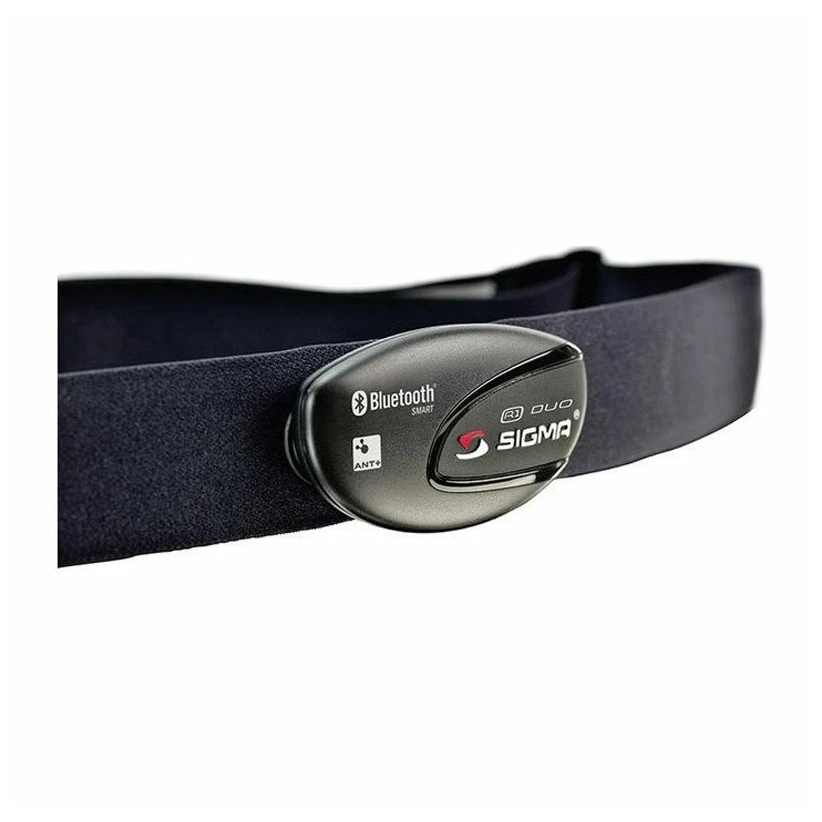 Sehr leichtes und komfortables Brust-Pulsmessgerät Sigma R1 Duo, Sender + elastischer Brustsensor. EKG-genau misst es zuverlässig Ihre aktuelle Herzfrequenz mit Bluetooth Smart und ANT+ Sender. Der Sensor ist auf einem leichten, eng anliegenden und sehr bequemen Textilgurt angebracht, der problemlos mit der Hand gewaschen werden kann. Das R1 DUO ist ein tolles Zubehör für jeden Radfahrer.