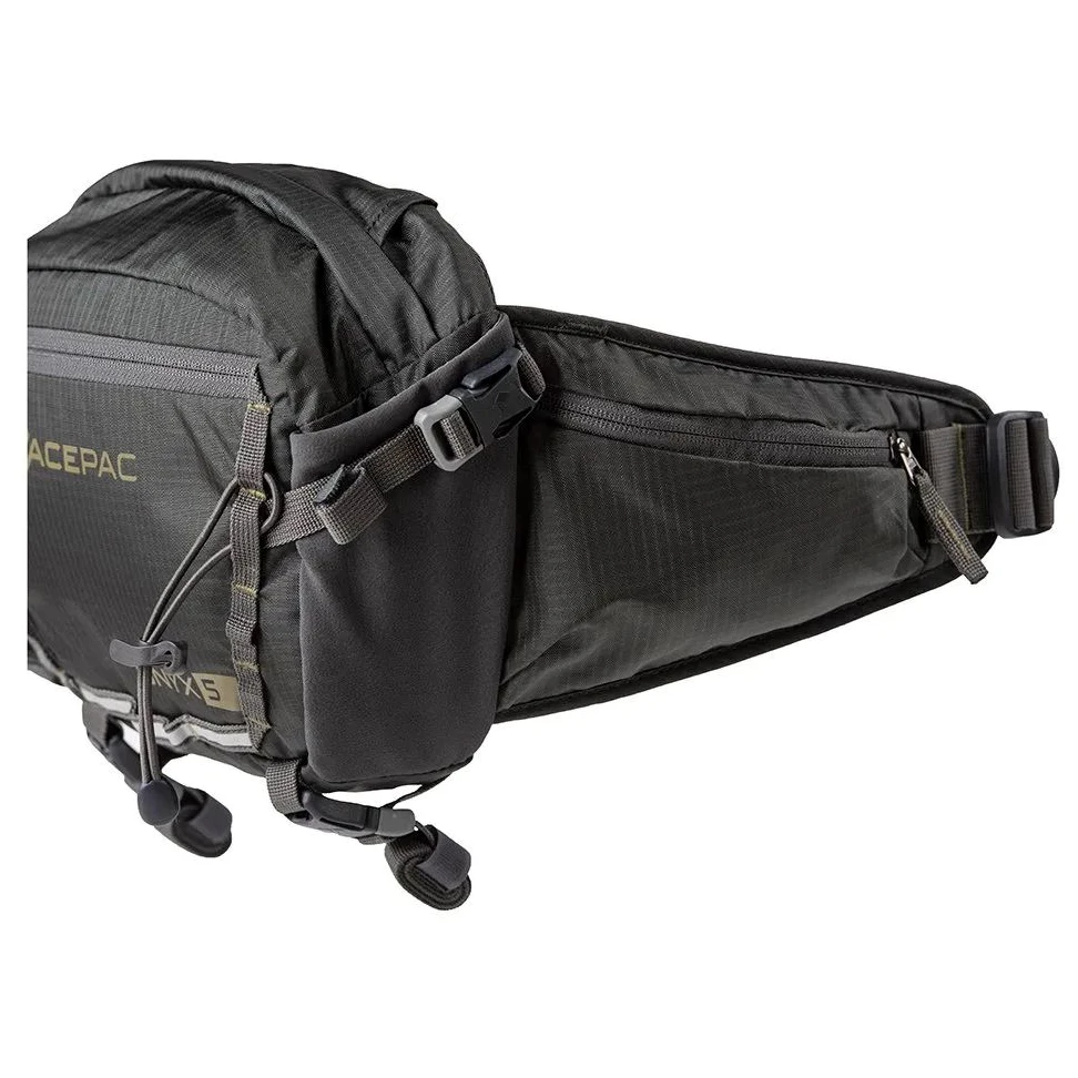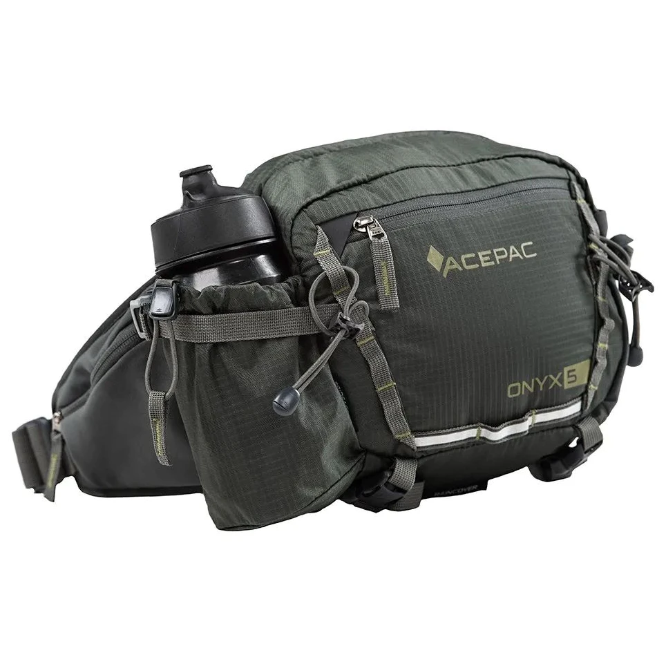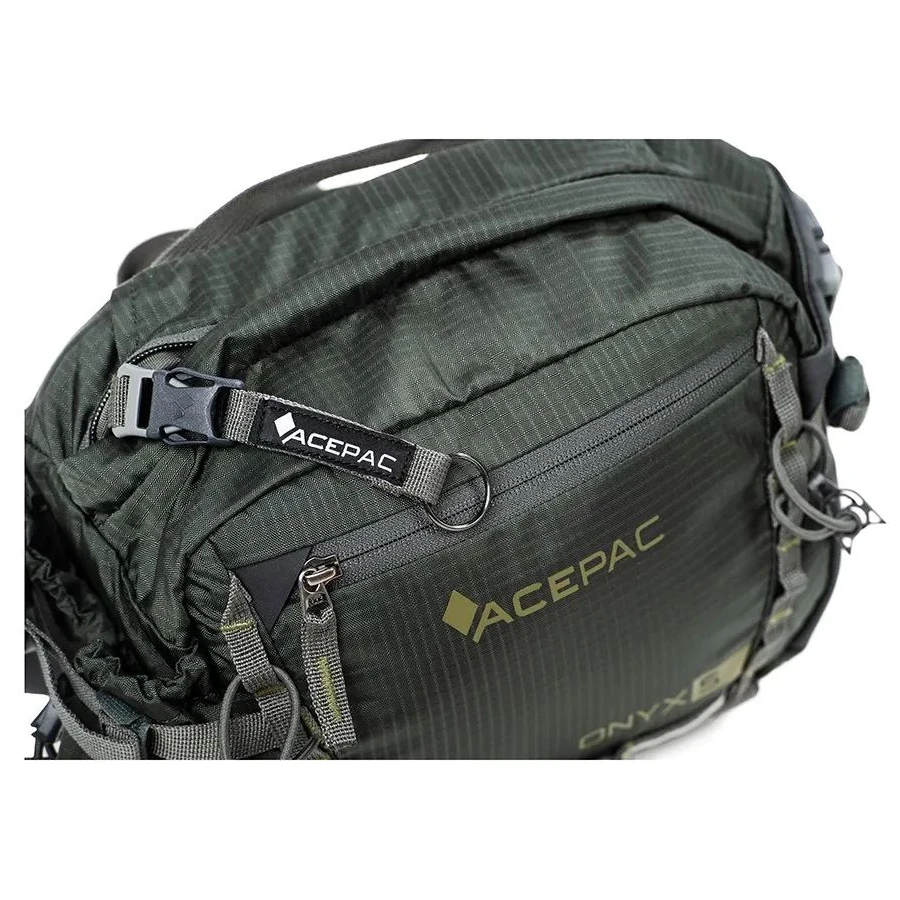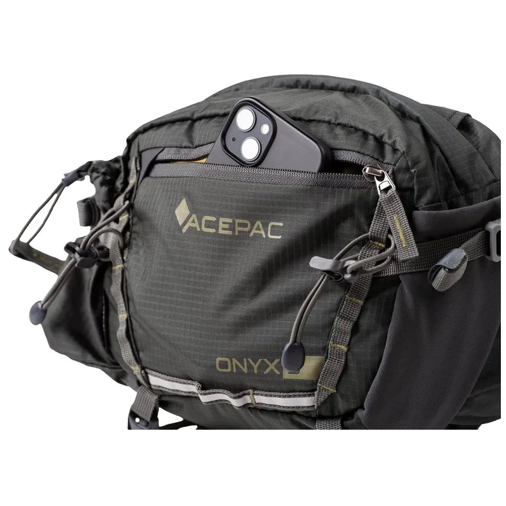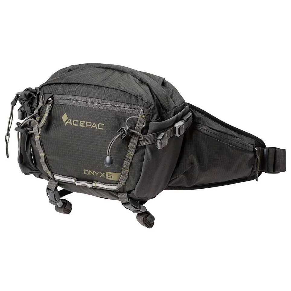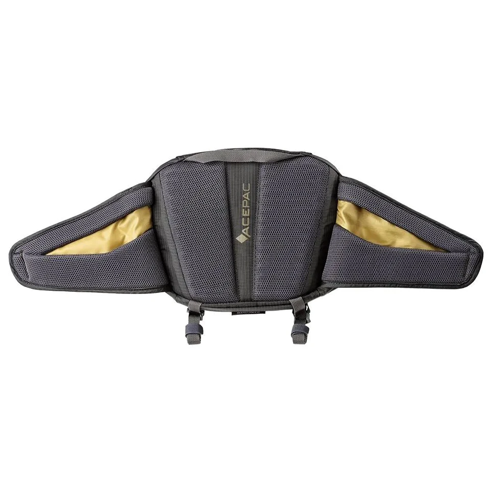 Gürteltasche Acepac Der Onyx 5 MKIII bietet trotz seiner kompakten Maße reichlich Stauraum. Der Innenteil besteht aus einem Organizer mit 4 Netztaschen , der Ihnen hilft, die Übersicht zu behalten. An der Außenseite befindet sich eine gepolsterte Reißverschlusstasche. Ein weiterer Vorteil dieser Gürteltasche ist ihre Kompatibilität mit Trinkblasen. Die kompakten Maße ermöglichen zudem das Tragen sowohl unter als auch über dem Trikot. Für maximalen Komfort während deines Trainings sorgt das komfortable E3D-Rückensystem, das mit perfekter Luftzirkulation überzeugt. Die Gürteltasche besteht aus äußerst strapazierfähigem Nylonmaterial, das durch eine Ripstop -Beschichtung und hochwertige YKK -Reißverschlüsse ergänzt wird.