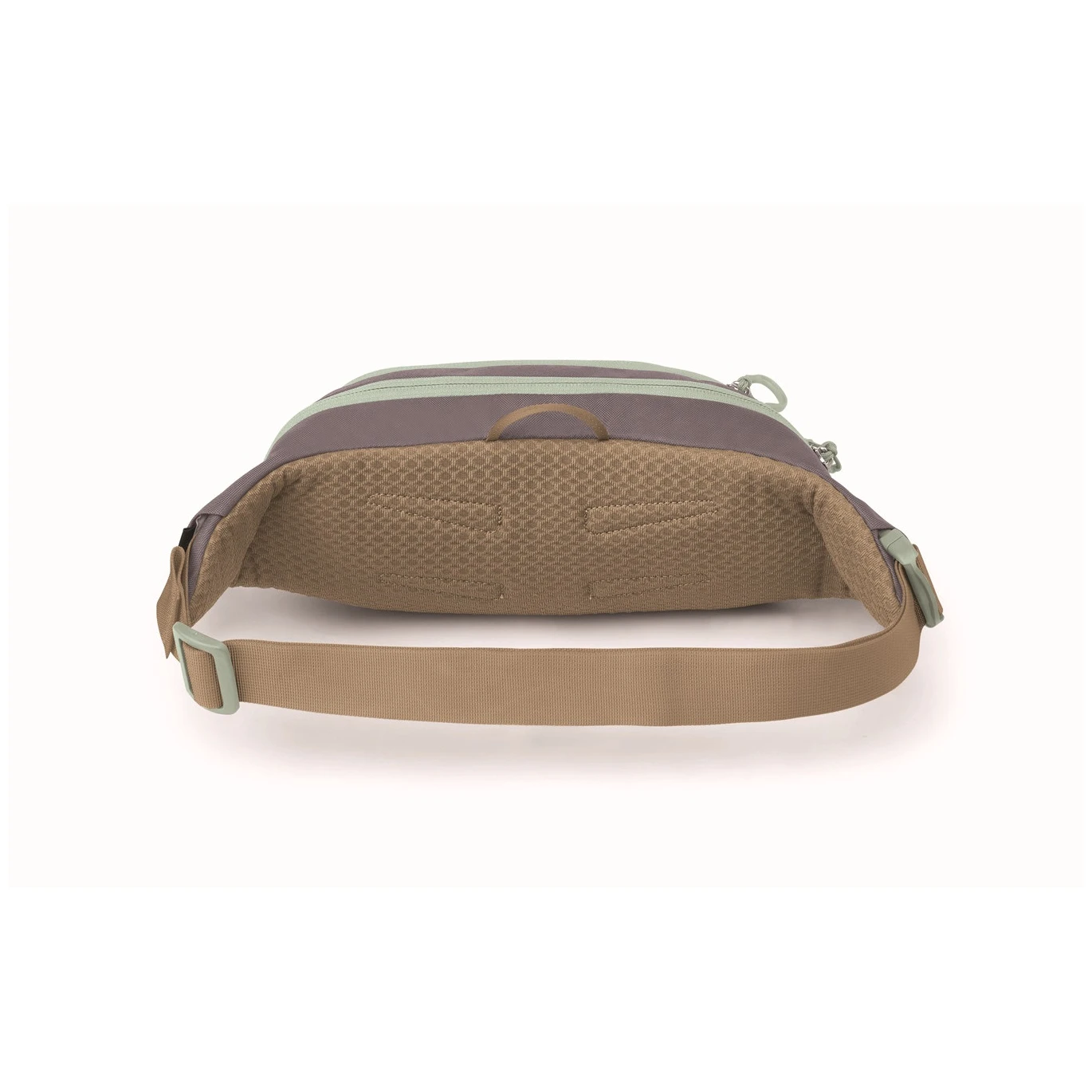 Die Gürteltasche hat ein Hauptfach mit Reißverschluss, einen internen Mesh-Organizer mit Schlüsselclip und eine Außentasche mit Reißverschluss. Dank ihrer angenehmen Form und dem verstellbaren Riemen um die Taille ist die Tasche angenehm zu tragen.