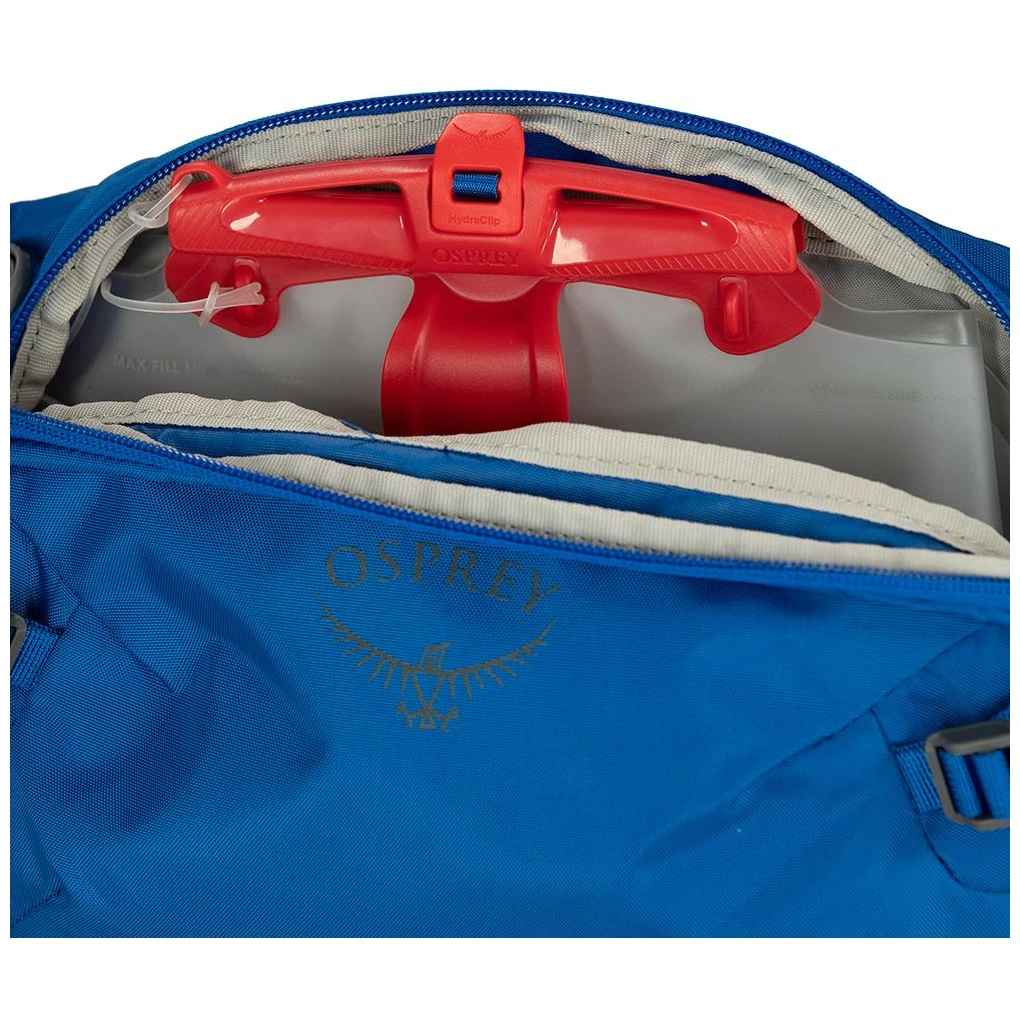Es gibt außerdem ein großes Hauptfach mit Reißverschluss und einer Hülle für einen 1,5-Liter-Hydraulikbehälter mit starker Magnetbefestigung. Sie werden auch die leicht zugängliche Reißverschlusstasche auf der Vorderseite mit interner Werkzeugaufteilung, zwei Reißverschlusstaschen am Hüftgurt und eine Lichthalterung mit reflektierenden Grafiken zu schätzen wissen.