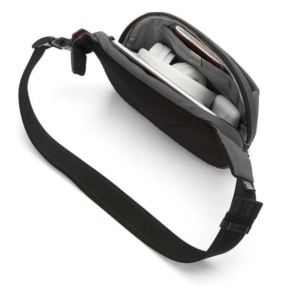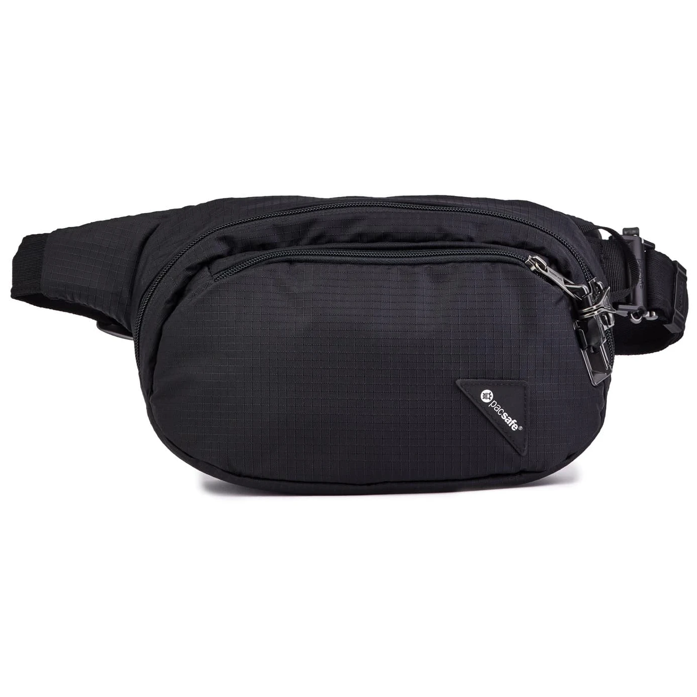 Sicherheits-Gürteltasche Pacsafe Das Vibe 100 verfügt über zahlreiche Sicherheitsfunktionen, die Diebe daran hindern, Ihre Dokumente oder Wertsachen zu stehlen. Das erste dieser Elemente ist der PopNLock-Sicherheitsverschluss, der den Gurt schnell und zuverlässig öffnet bzw. schließt und verriegelt. Du kannst die Gürteltasche zum Beispiel im Restaurant an einem Stuhl befestigen. Um zu verhindern, dass jemand den Gurt durchschneidet, ist er mit zwei Stahlkabelnverstärkt. Das eXomesh ®verdeckte Stahlgitterverhindert ein Einschneiden des Nierenkörpers. Die Gürteltasche verfügt außerdem über das Roobar® Sport Reißverschluss-Verriegelungssystem, mit dem Sie die Schieber miteinander verbinden und an der Metallverstärkung verriegeln können, und eine RFIDsafe® - Tasche , die vor dem Auslesen und anschließenden Missbrauch von Karten und Dokumenten schützt. Die Gürteltasche verfügt über zwei Haupttaschen vorne und im Inneren der Gürteltasche finden Sie zusätzliche Taschen und Schlaufen, die zur besseren Organisation der Gegenstände beitragen. Das Volumen der Hüfttasche beträgt 4 Liter und der Gurtumfang lässt sich auf 82 - 115 cm einstellen.