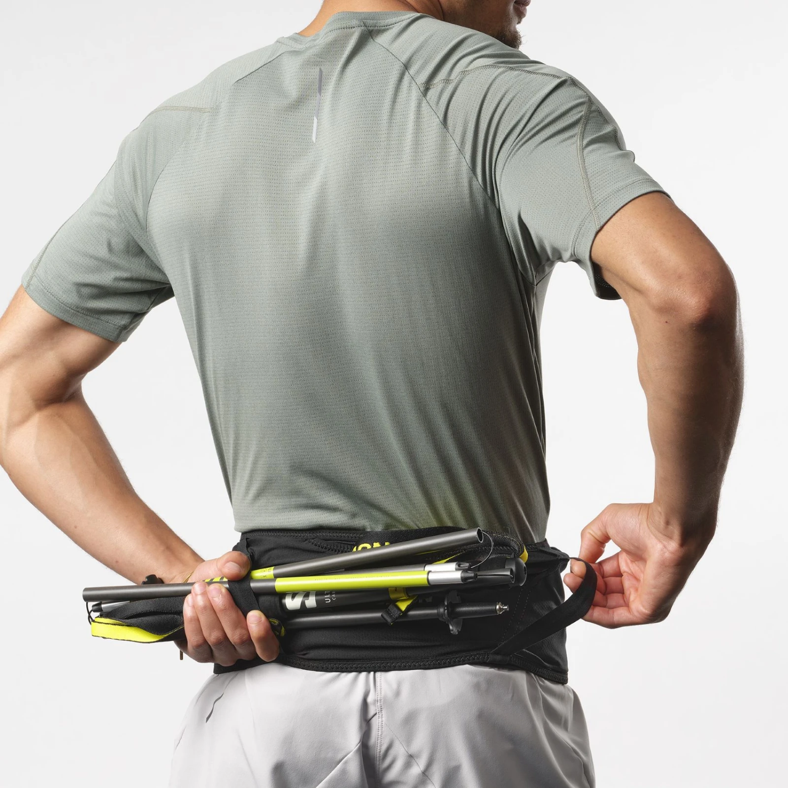 Funktionelle, sportliche Gürteltasche mit höherer (breiter) Taille Hoher Puls von Salomon Es ist speziell für Läufer, Skifahrer, Wanderer und alle Sportler konzipiert. Die Gürteltasche ist eine Kombination aus modernem minimalistischem Design, Komfort und Bequemlichkeit. Es bietet Stauraum für Ihre persönlichen Gegenstände, Wasser sowie verschiedene Sportgeräte und Lebensmittel. Atmungsaktives 4-Wege-Stretchgewebe sorgt für eine bequeme Passform, die bei Bewegungen an Ort und Stelle bleibt. Zwei dehnbare Quertaschen eignen sich zur Aufbewahrung von 500 ml Flüssigkeit.