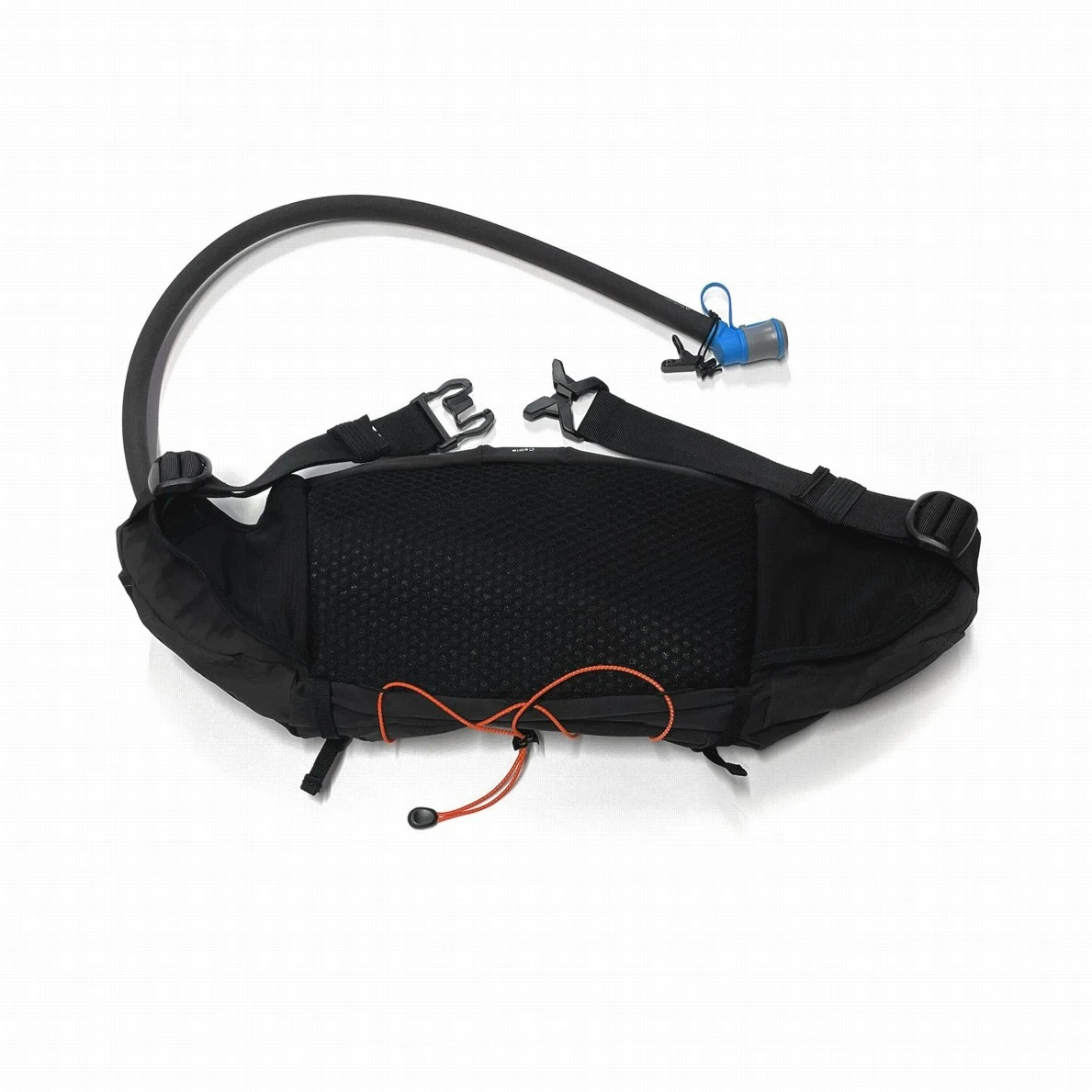 Neben den seitlichen Ausgängen für den Trinkblasenschlauch gibt es im oberen Bereich auch einen Ausgang für das Stromkabel der Stirnlampe. Das Hauptfach verfügt über ein separates Fach für einen 1,5-Liter-Beutel der neuen Marke HydraPak mit breitem Verschluss für leichtes Befüllen und einfache Pflege. Der Schlauch ist von der Tasche abnehmbar, wodurch das Nachfüllen von Flüssigkeiten und das Ausspülen des Schlauchs selbst sehr einfach wird. Sie können den Schlauch mit dem mitgelieferten Clip an der Jacke befestigen oder den magnetischen Schlauchhalter erwerben. Die Trinkblase besteht aus freiem BPA und PVCMaterial und kann mit Flüssigkeiten bis 60°C befüllt werden.
