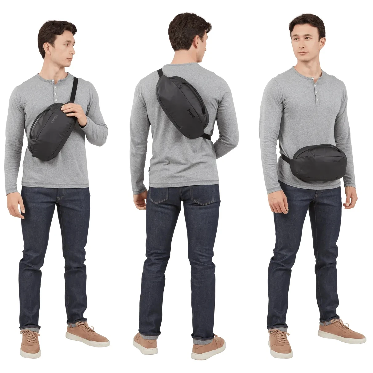 Elegante Umhängetasche Tasche Tact Waistpack 5 l der Marke Thule mit bluesign®-Zertifizierung aus recycelten Materialien mit sicheren Einstiegspunkten und Zugriff auf Ihre Sachen unterwegs. Der Außenstoff, das Futter und das Netz bestehen aus 100 % recyceltem Polyester aus recycelten Plastikflaschen. Dank der Schlüsselschlaufe sind Ihre Schlüssel vor Verlust geschützt und dennoch jederzeit griffbereit.