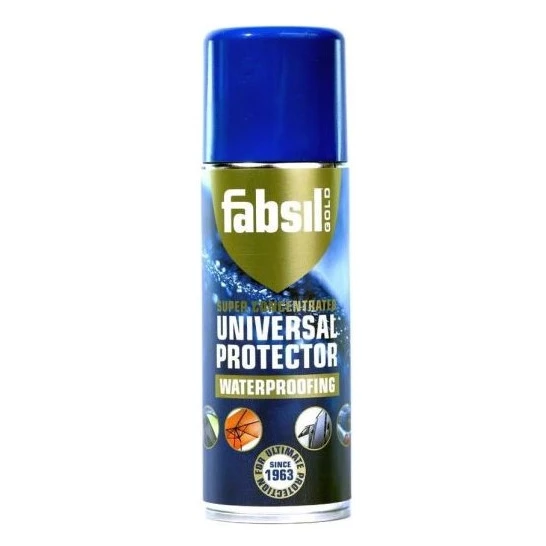 Sehr wirksame und konzentrierte Silikon- Imprägnierung im Spray Fabsil Gold 200ml Aerosol von Granger‘s dient zum Imprägnieren von Zelten, Rucksäcken und anderem Outdoor-Material. Lassen Sie nicht zu, dass ein durchnässtes Zelt Ihre Pläne und Ihre Stimmung verdirbt. Dank der Fabsil-Imprägnierung können Sie in Ruhe schlafen oder entspannen, das Wasser bleibt dort, wo es hingehört und das Produkt schützt zusätzlich vor UV-Strahlung. Fabsil bietet vielfältige Einsatzmöglichkeiten, Sie können es auf allen Outdoor-Materialien verwenden.