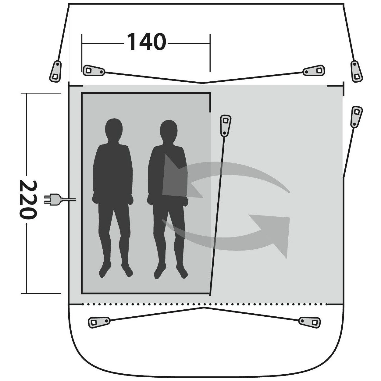 Mit dem Schlafzimmer Inner Newburg 240 der dänischen Marke Outwell können Sie einfach und schnell einen privaten Raum für 2 Personen in einem Zelt der Newburg-Serie mit aufblasbarer Struktur schaffen.